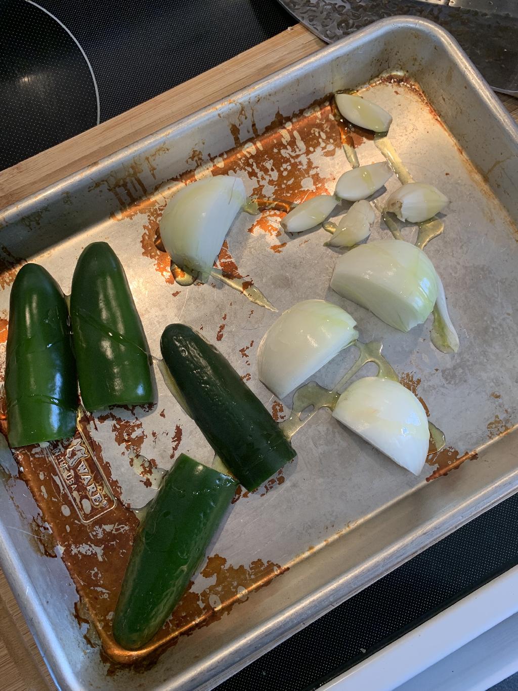 Step #5 Place in the oven with Broiler set to HI. Allow one side to char, then turn everything over. Keep a close eye on this, you want it to char, not burn.