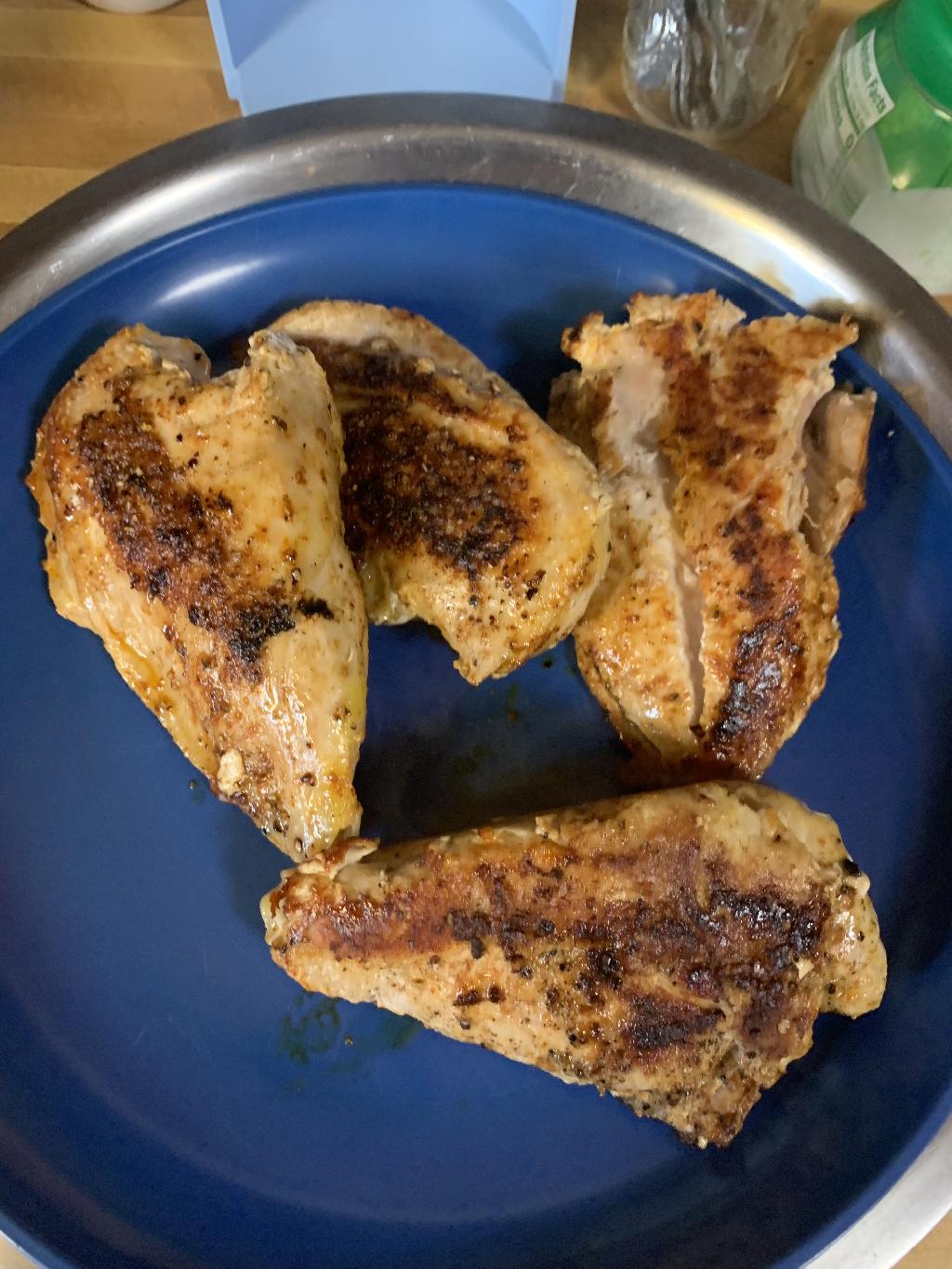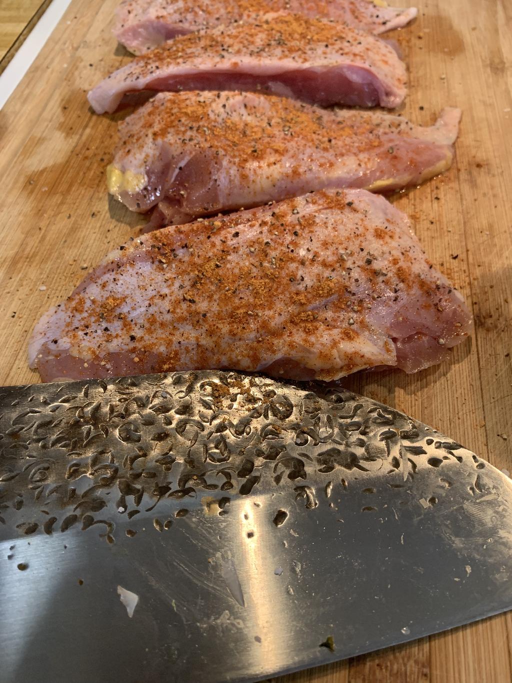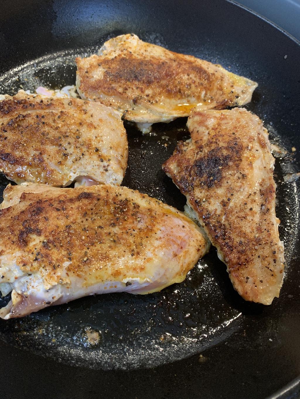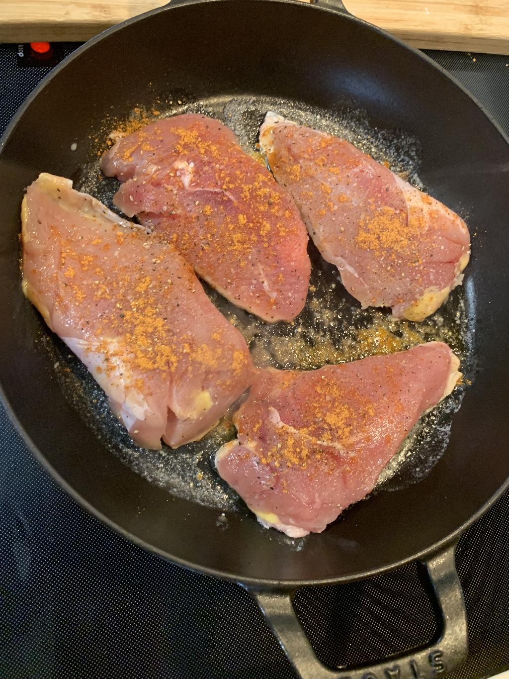 Step #8 While the skin side is cooking, season the other side with Salt, Pepper and Taco Seasoning.