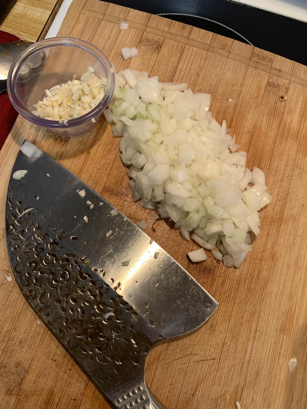 Step #15 Add cooked Onions and Garlic to mixing bowl.