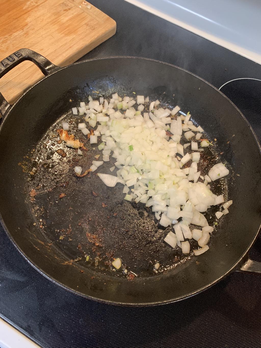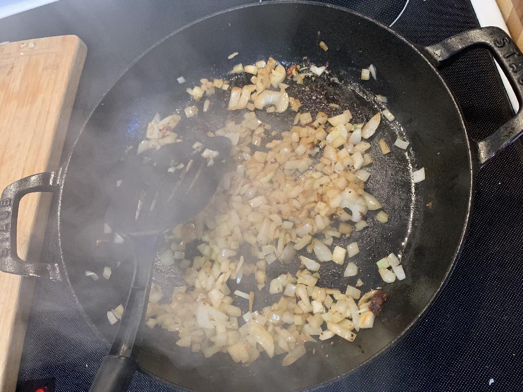 Step #12 Season Onions with salt and pepper. Cook for 5 to 7 minutes until Onions are translucent.