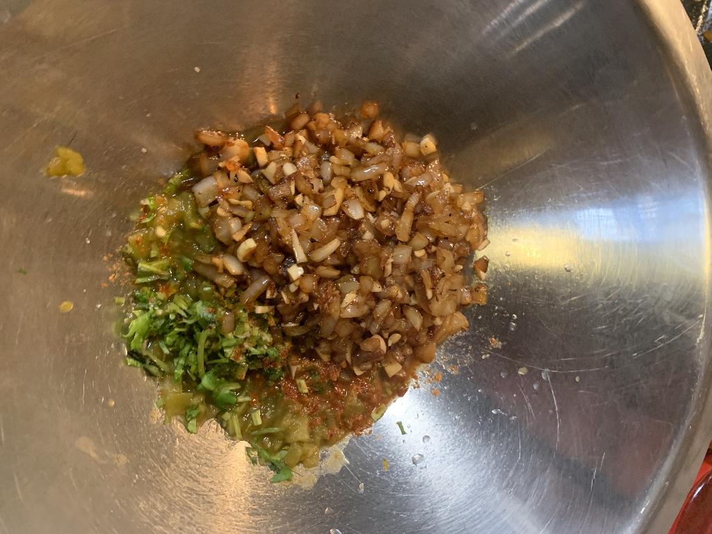 Step #19 Combine all the ingredients in the mixing bowl. This will be our filling for the Enchiladas.