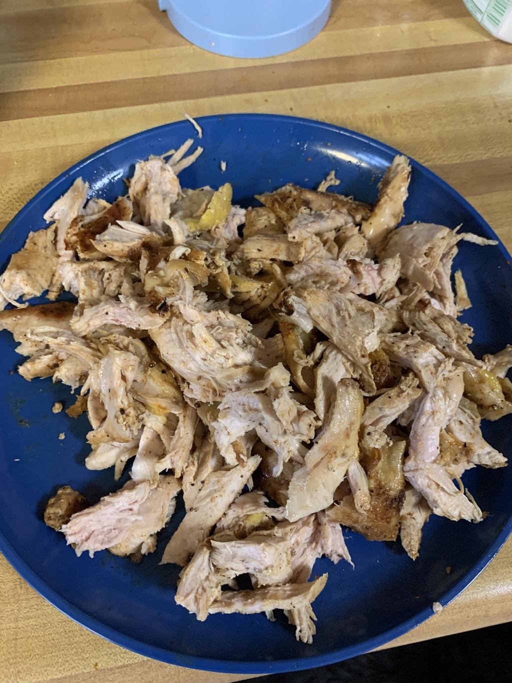 Step #16 After the Pheasant has cooled off, start shredding it with two forks or your hands.