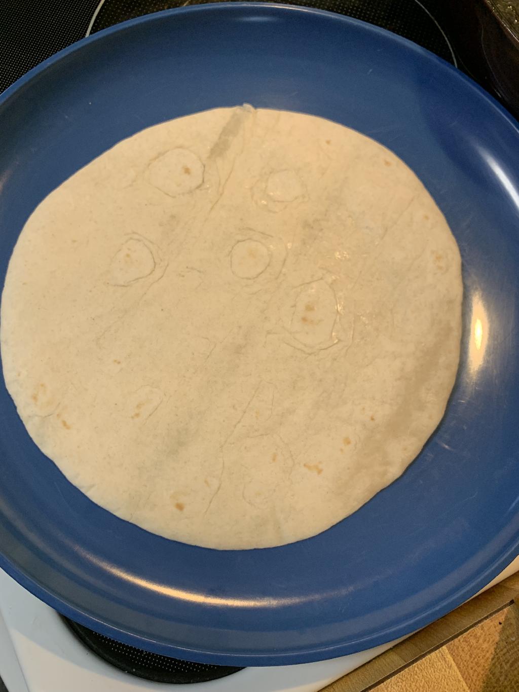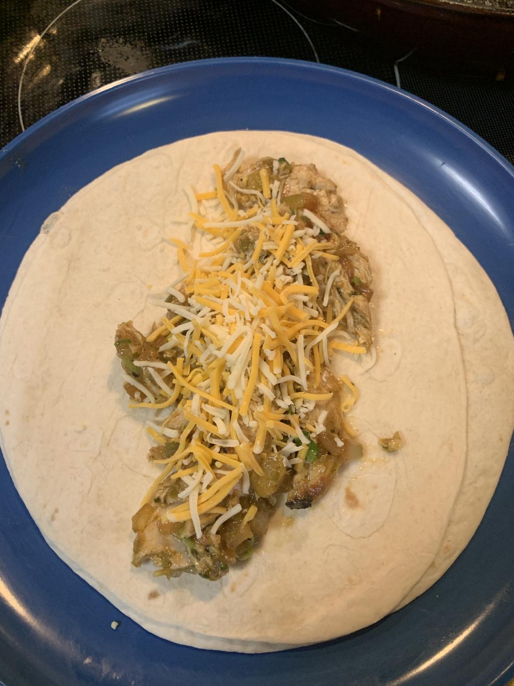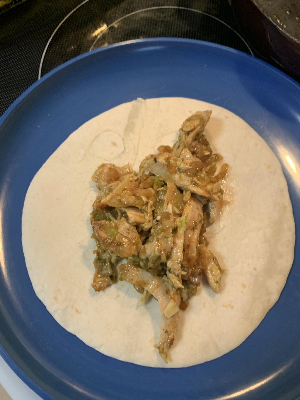 Step #22 Spoon some of the filling on top of one of the flour tortillas