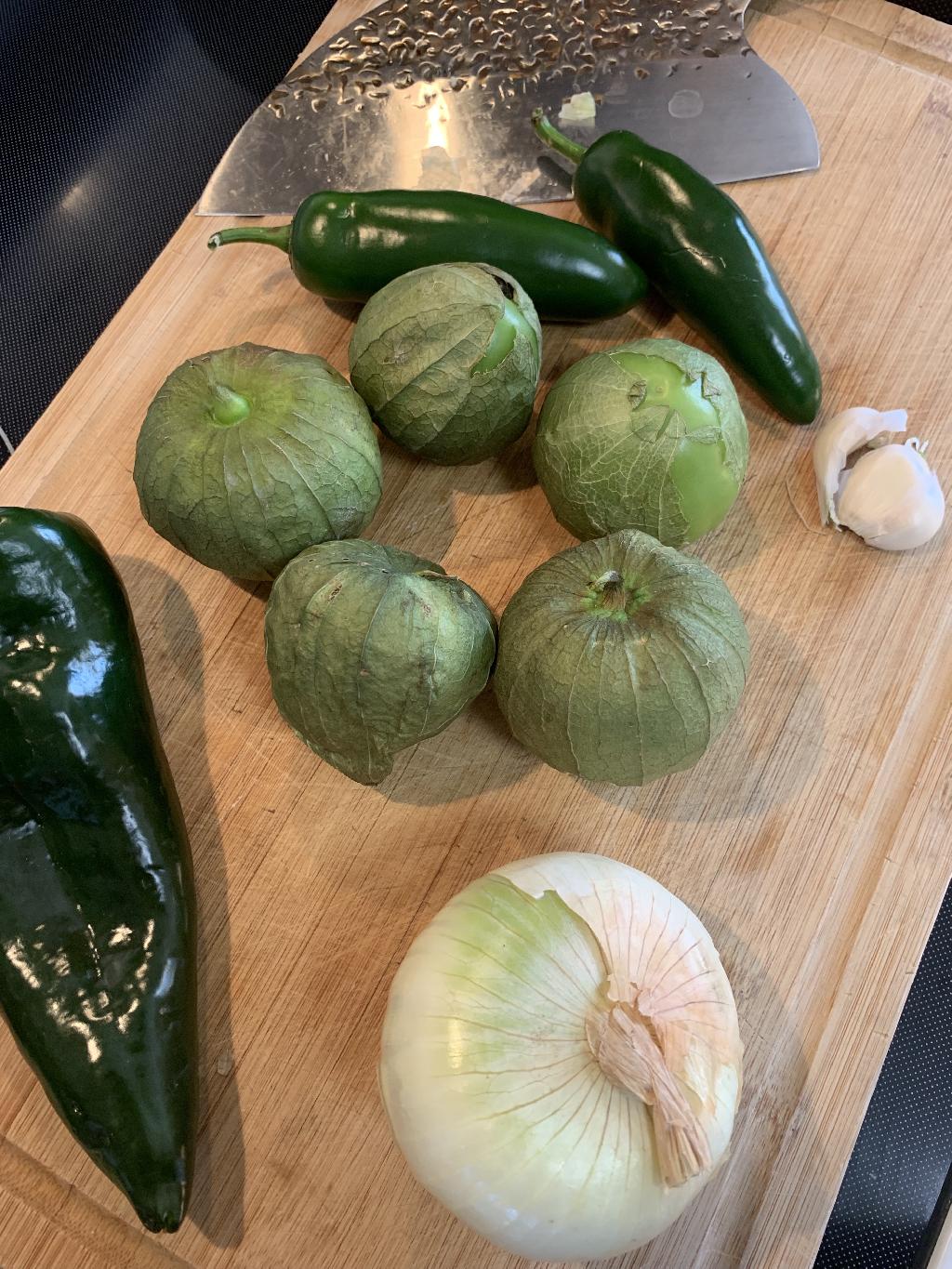 Step #3 Wash the Tomatillos and Peppers and remove skin from Onion