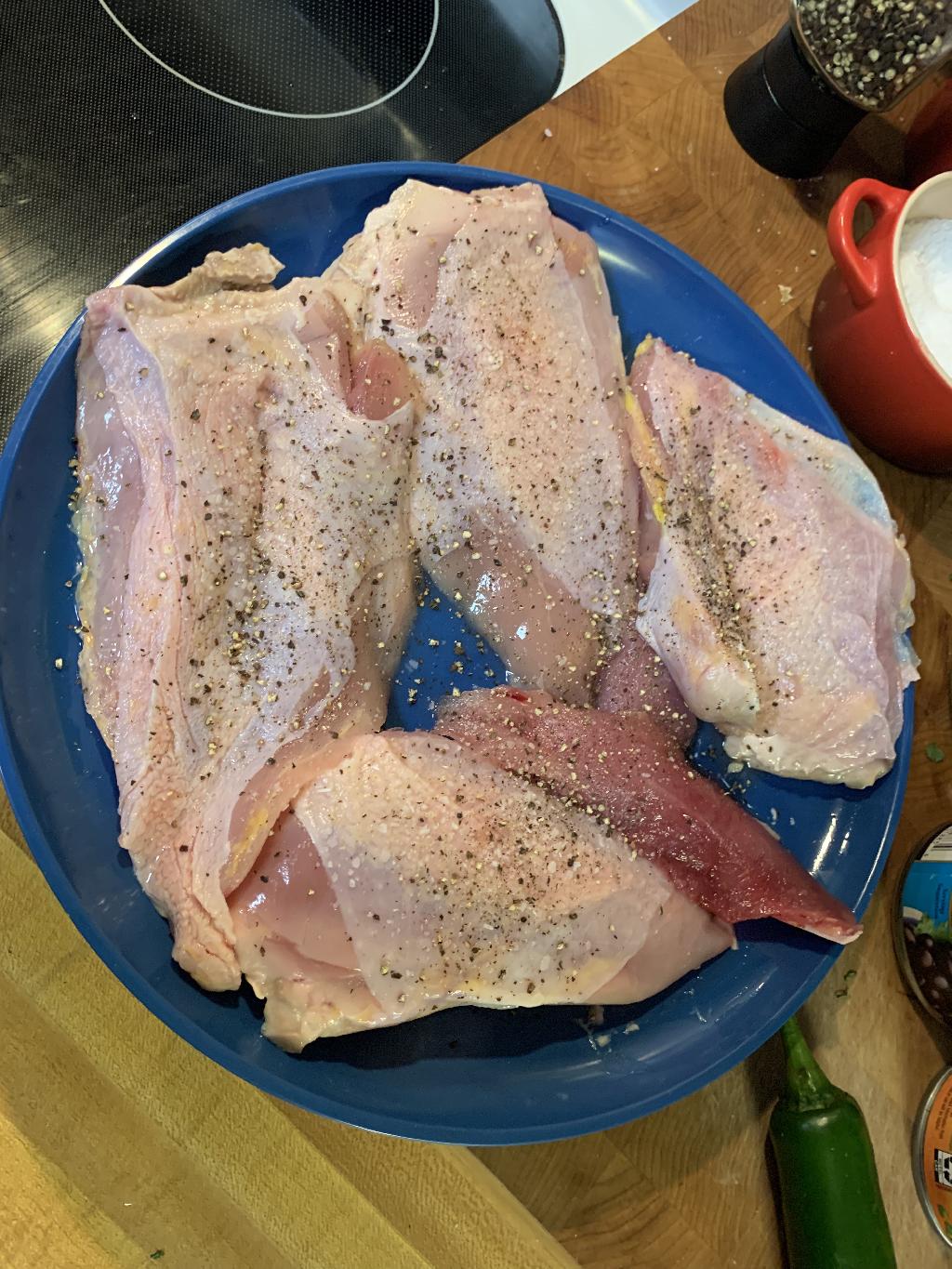 Step #2 Season both sides of Pheasant with Salt and pepper