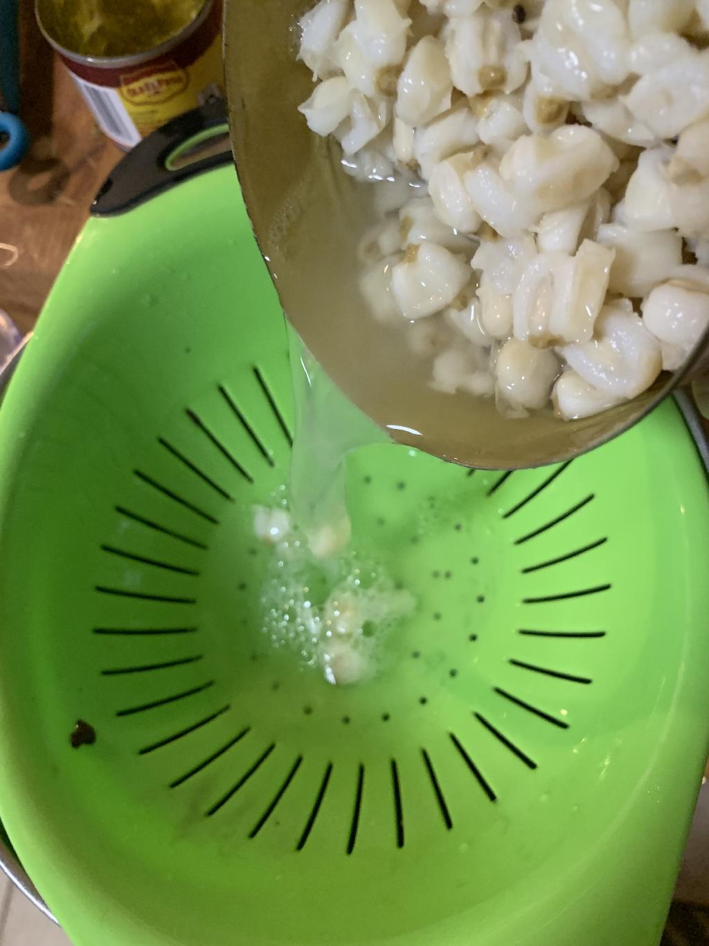 Step #12 Drain Hominy before adding it to the dutch oven.