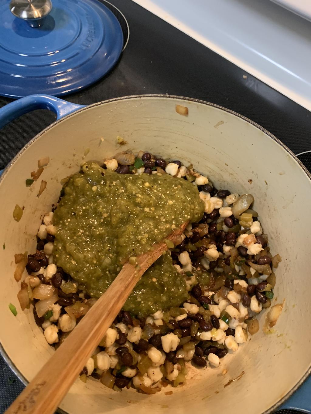 Step #13 Now add canned of Green Chile's and Salsa Verde.