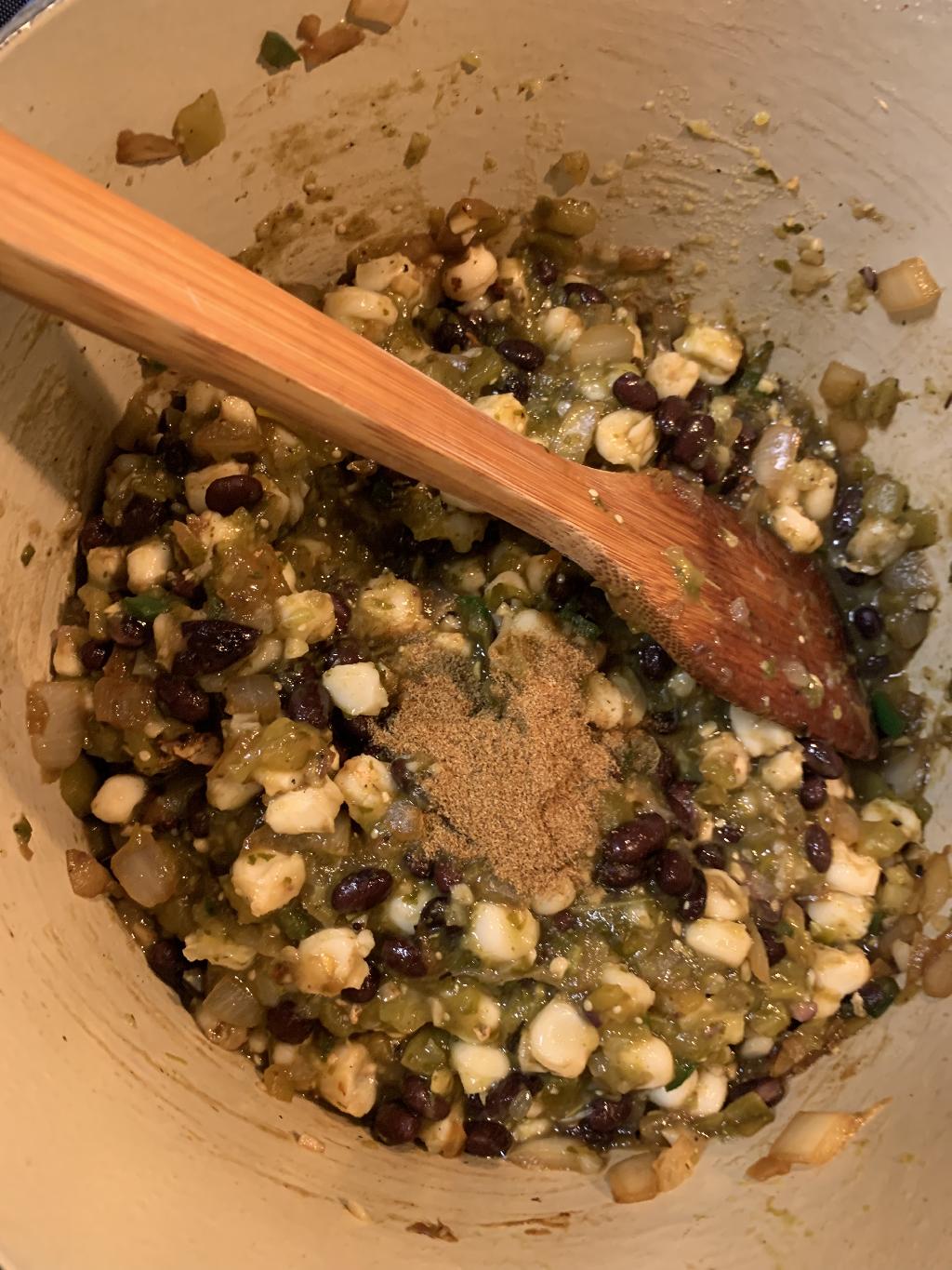 Step #14 Add Cumin, Oregano, Salt and Pepper, then stir to combine.