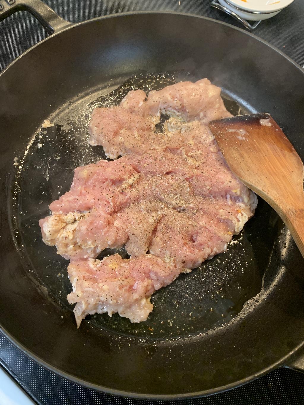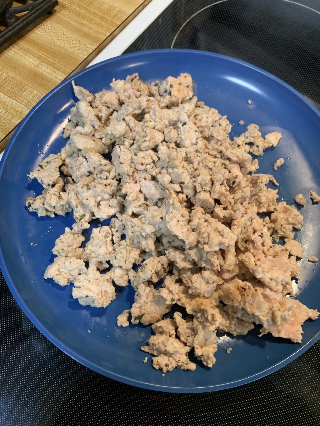 Step #3 Heat one tablespoon of Olive Oil in skillet on medium heat. Add one pound of Ground Pheasant. Season with salt, black pepper, and 1/2 tablespoon of Italian Seasoning