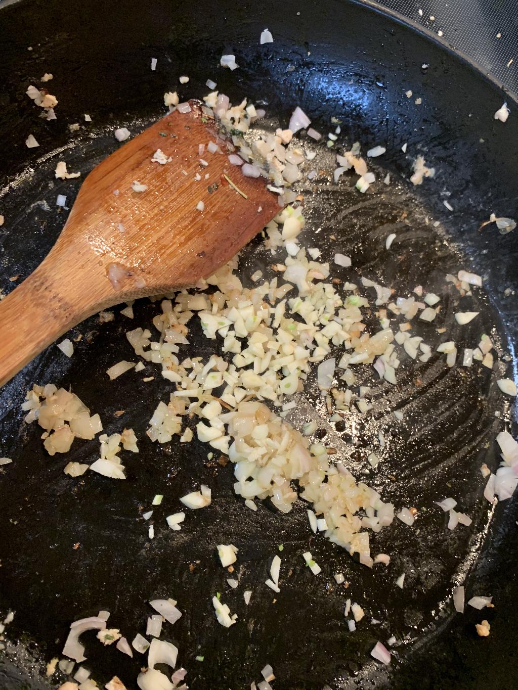 Step #2 Preheat Oven to 350. Dice up shallot and garlic