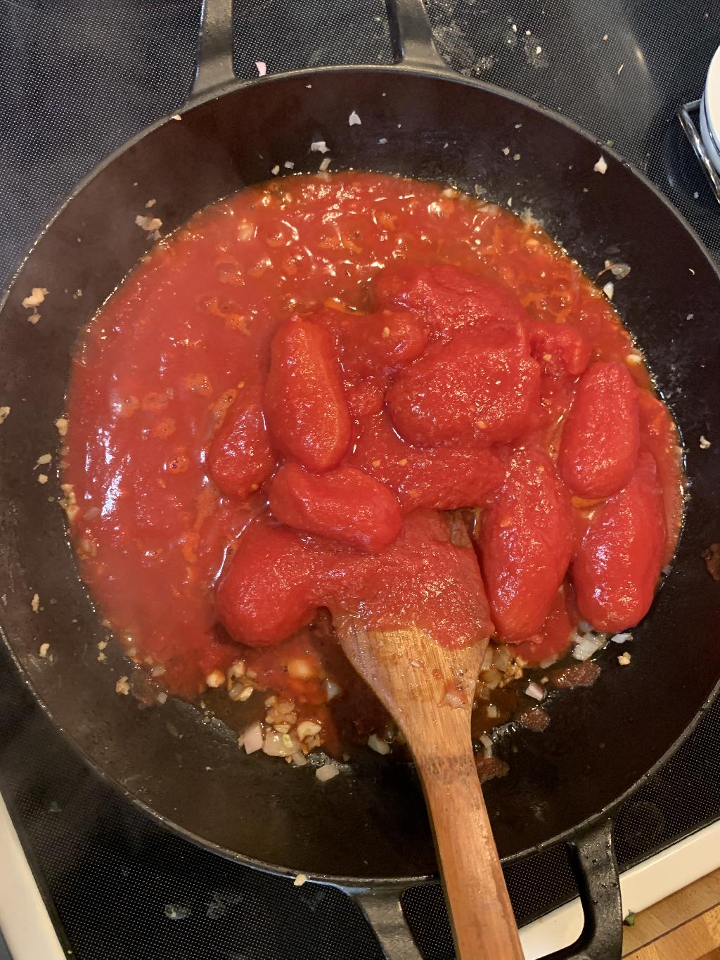Step #7 Add San Marzano peeled tomatoes
