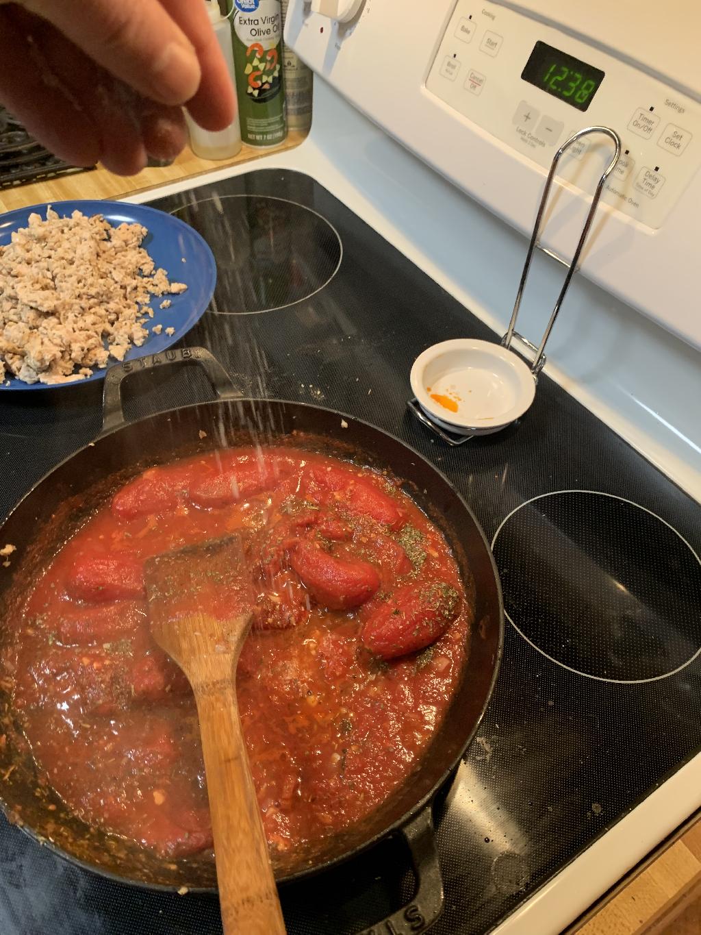 Step #8 Add Salt, black pepper, red pepper flakes and one tablespoon of Italian seasoning.