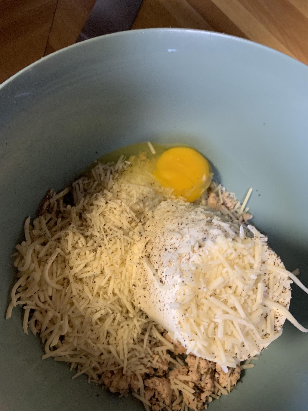 Step #16 Add Parmesan Cheese, Salt and Pepper, Italian Seasoning, Egg and Chopped Spinach