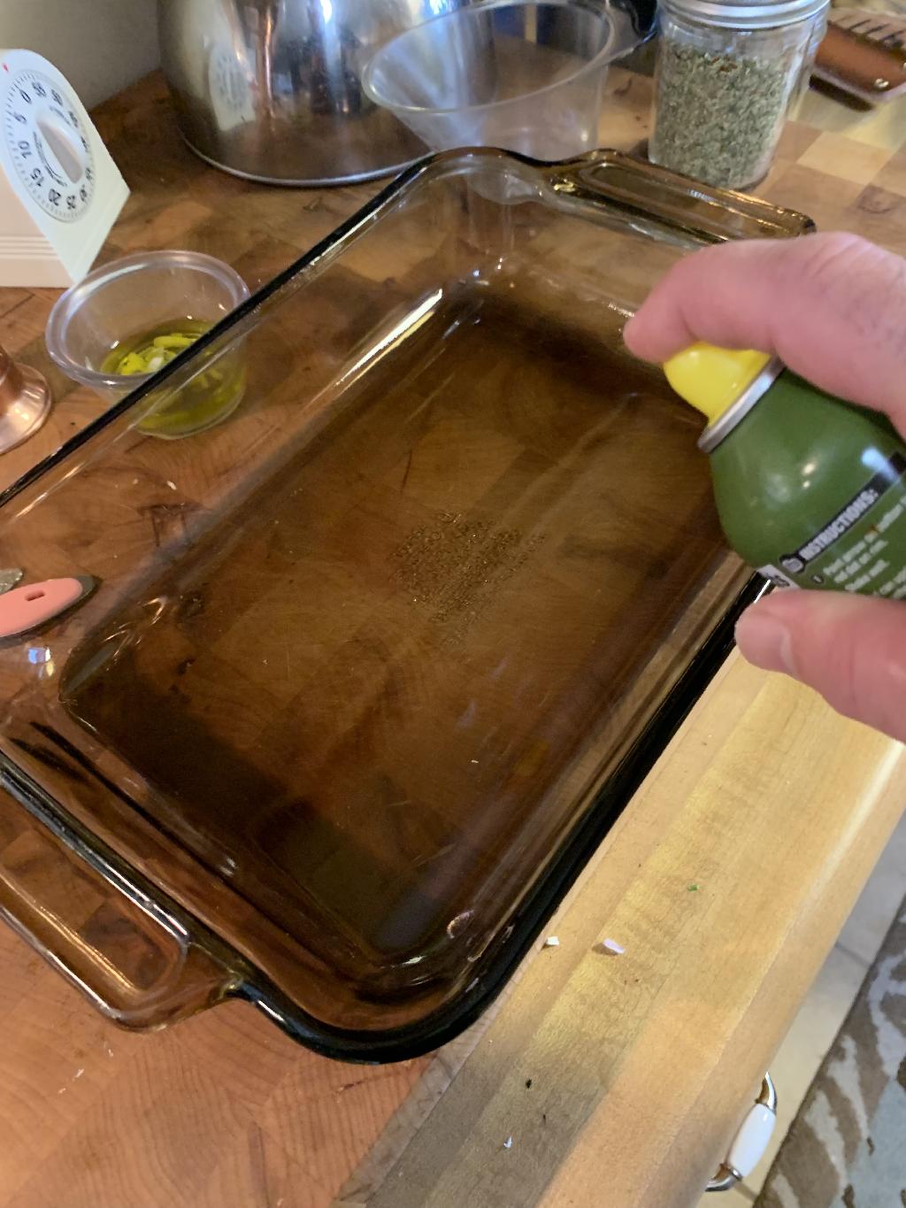 Step #18 Spray 9 x 13 baking dish with vegetable or olive oil spray