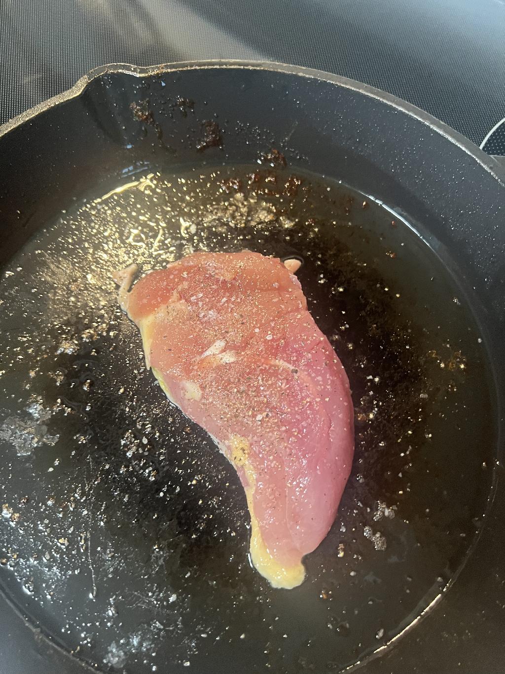 Step #1 Add skillet to stove top, setting heat to medium high. Add 1 tablespoon of butter or cooking oil to skillet and allow to get hot. Season the the pheasant breast on both sides with salt and pepper.