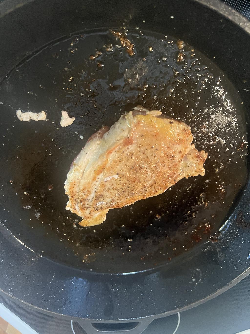 Step #3 Cook for a few minutes until brown, then flip. Don't cook all the way through, it should still be a little pink in the center. It'll finish off in the pizza oven. Remove the pheasant to plate. Allow to cool, then shred.
