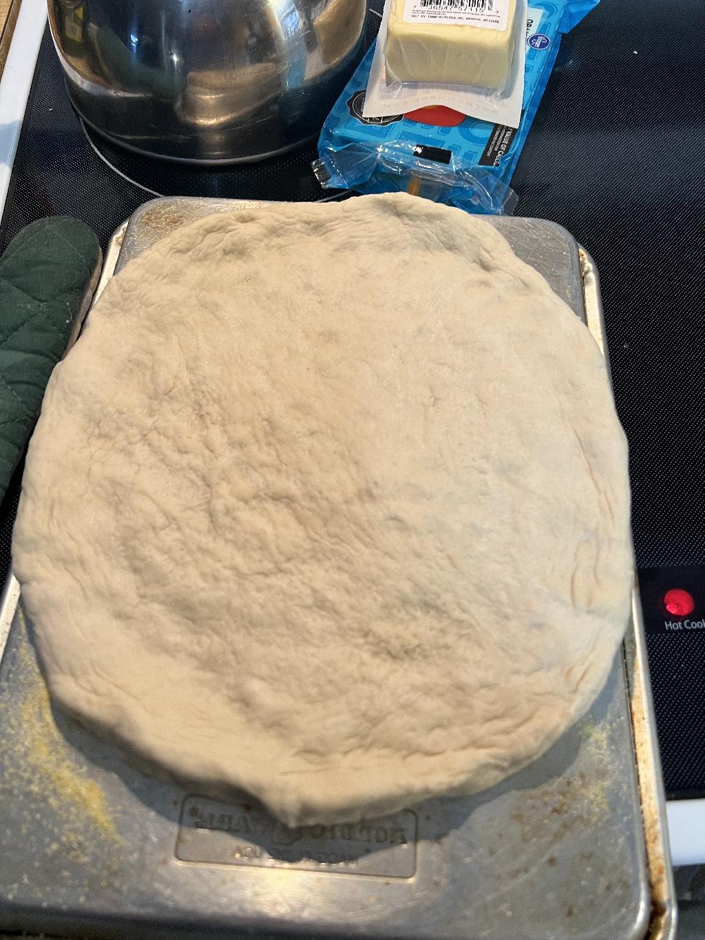 Step #5 Punch dough down and form into roundish pizza, it doesn't have to be perfect.