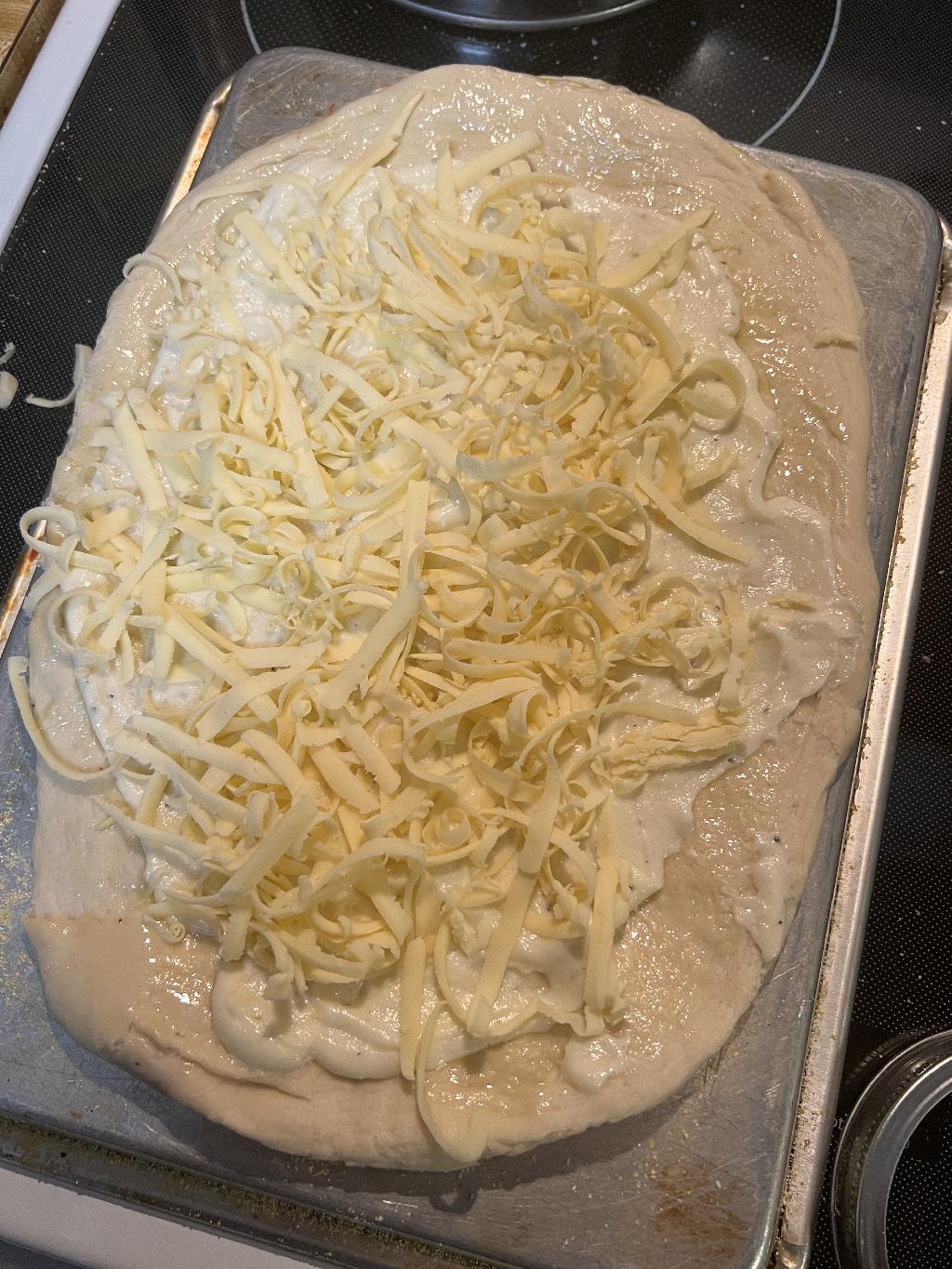 Step #9 Sprinkle with shredded Havarti and Mozzarella Cheese.