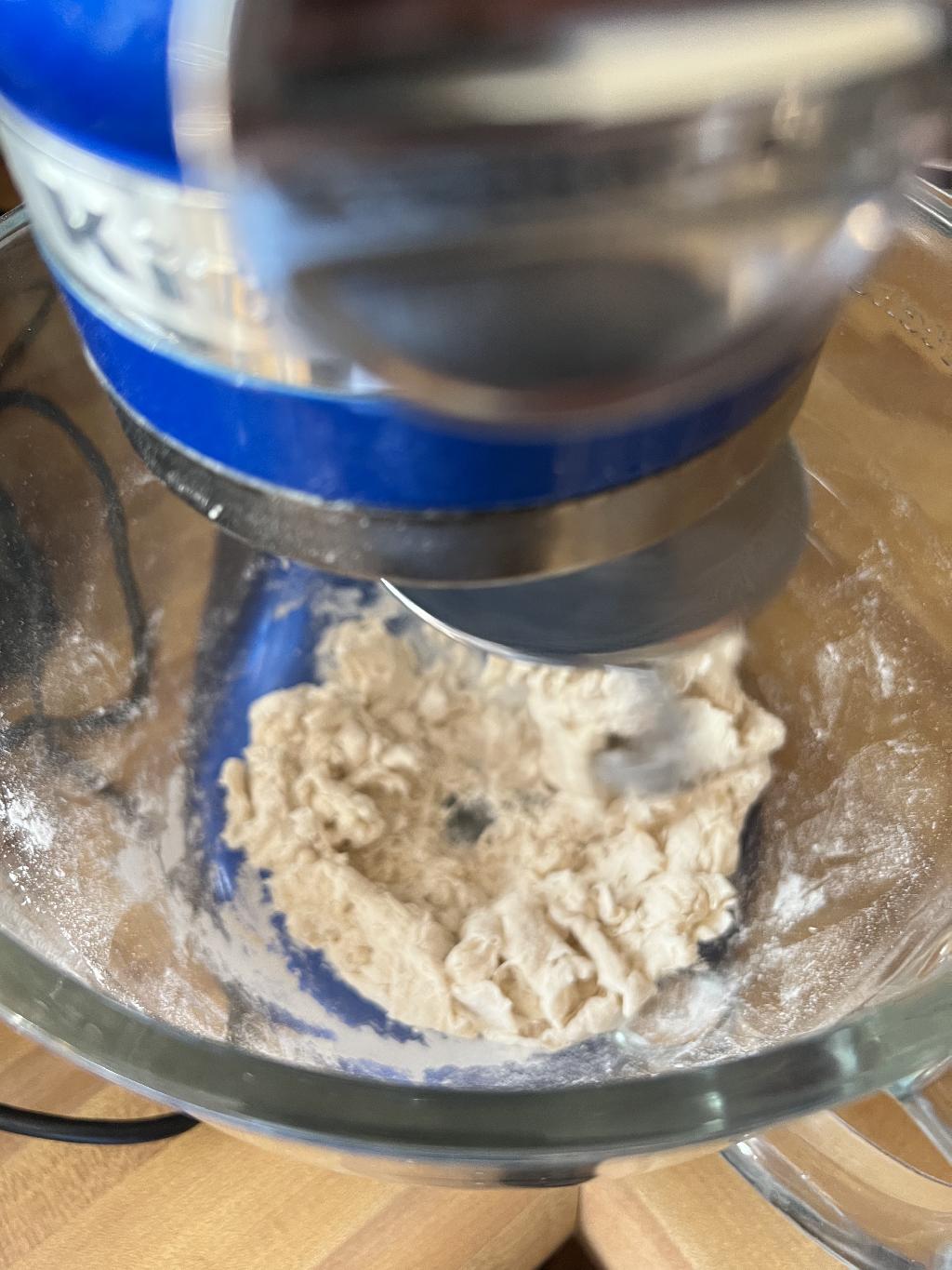 Step #4 Run on medium for 5-7 minutes. Dough should be supple yet firm. If it's too firm, add a little more water or beer. If it's to loose, add a little more flour.