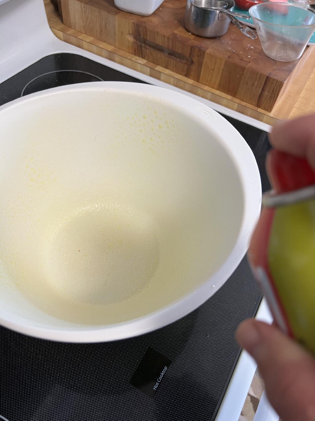 Step #1 Pour 1 1/2 cup of heavy cream into measuring cup and leave out so it can reach room temperature. In a small sauce pan on medium heat, add butter. Allow butter to melt, then add flour, using a whisk to combine.