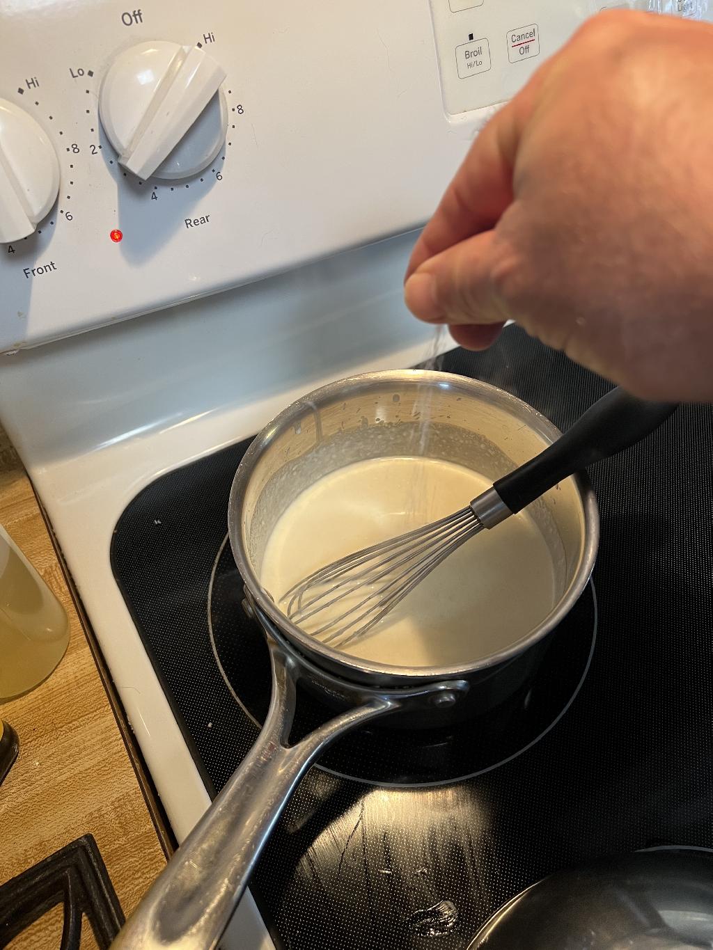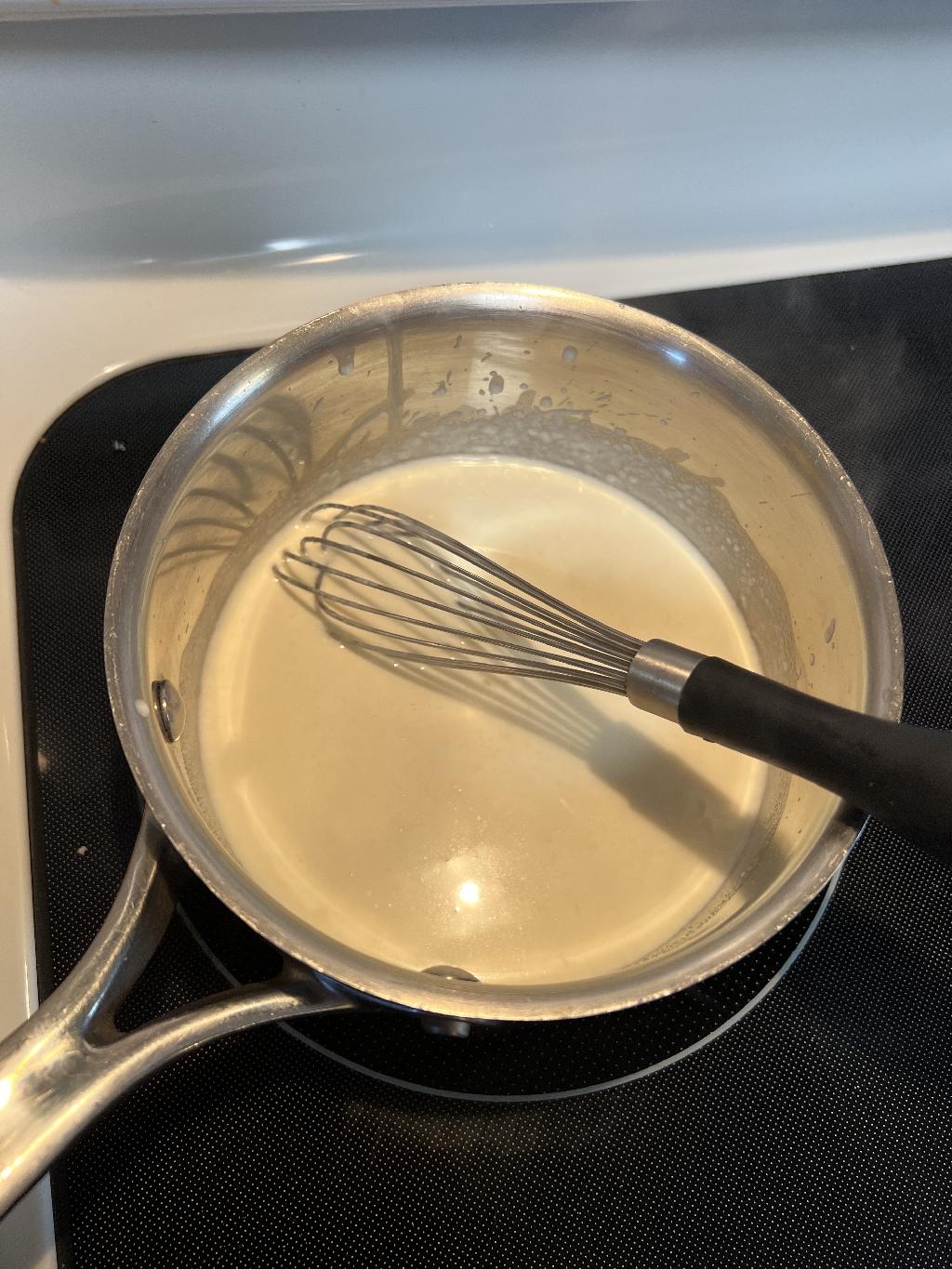 Step #5 Whisk until it starts to thicken, then remove from heat.