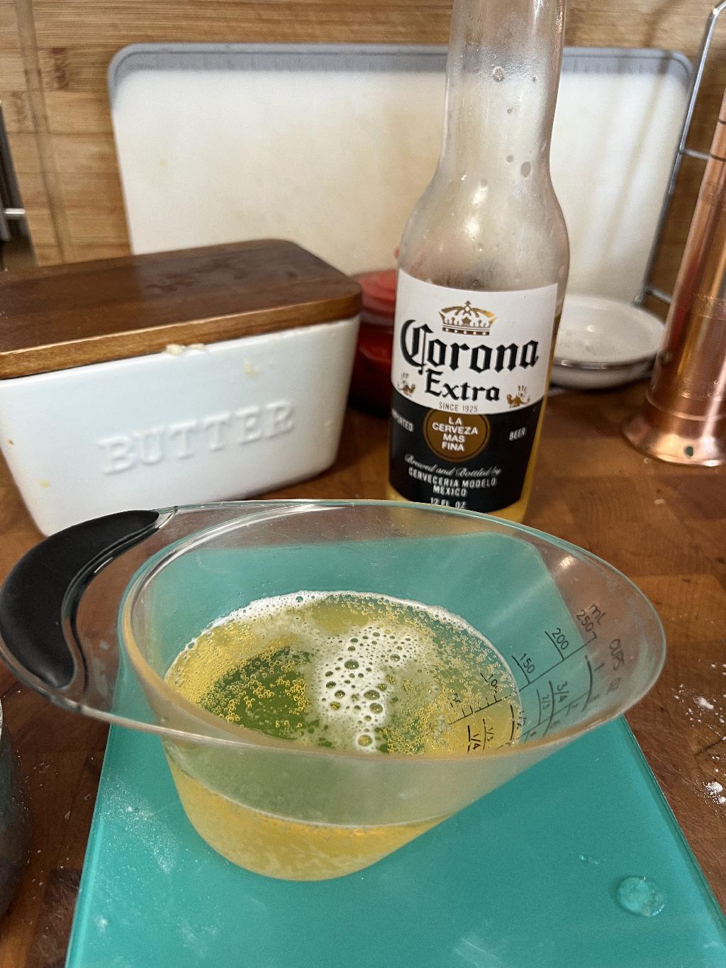 Step #1 Pour beer into measuring cup and leaving sitting out to reach room temperature. The yeast will take longer to activate if you mix with cold beer.
