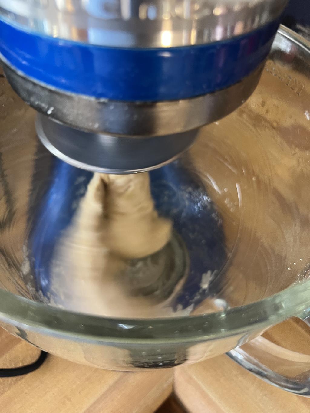 Step #6 Form the dough into a roundish ball and add to mixing bowl.