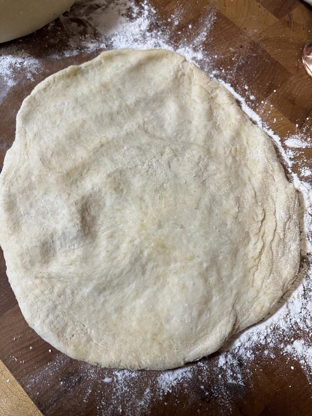 Step #11 On a well floured surface, punch down your dough and form into a roughly round pizza shape, it doesn't need to be perfect.