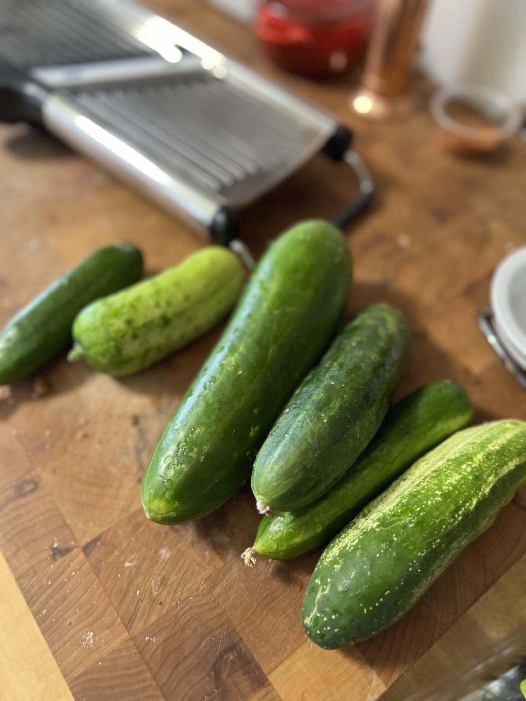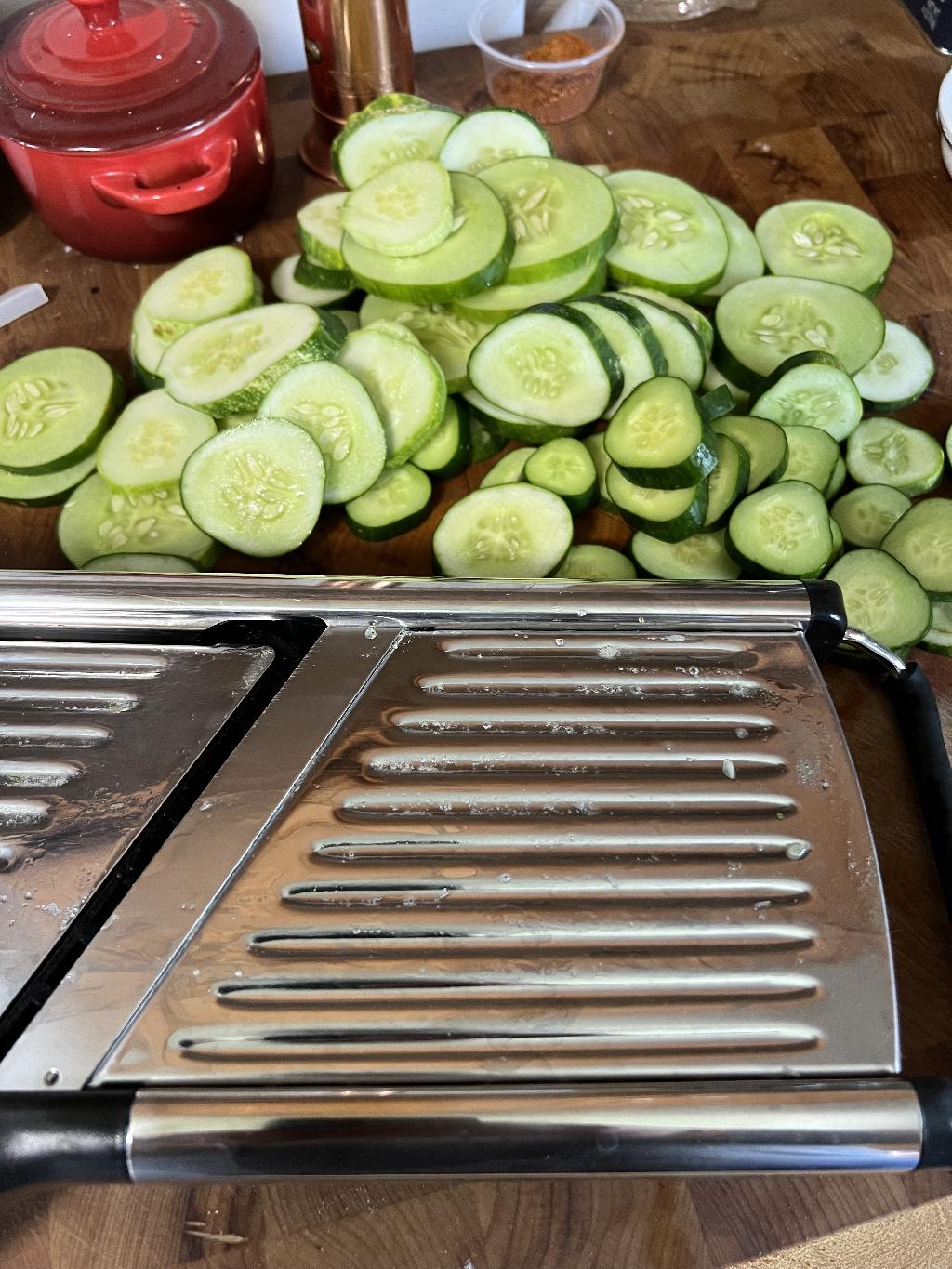 Step #3 Slice in cucumber into desired thickness on mandolin.