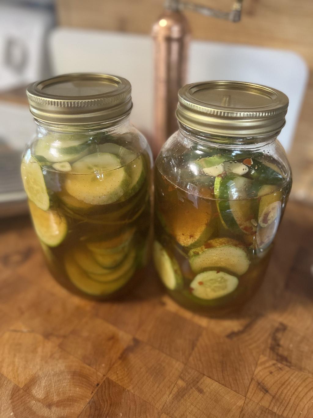 Step #7 Cover with liquid brine. Seal and allow to cool, before placing in refrigerator. Pickles need to be in the fridge for at least two days, but one to two week is better.