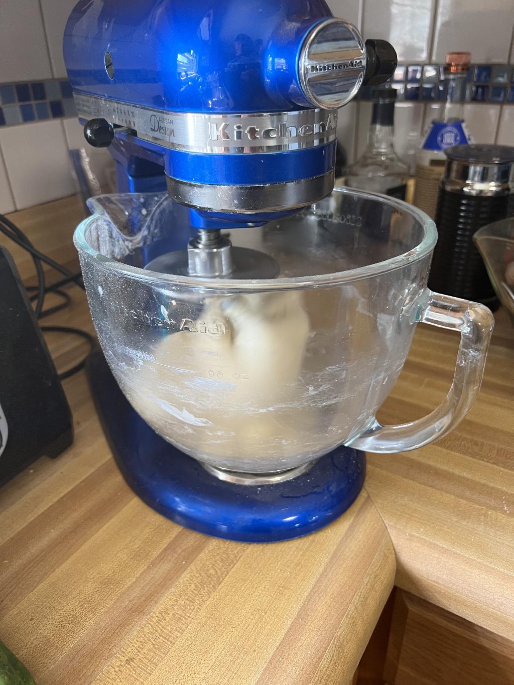 Step #5 Turn mixer speed up to a medium setting and allow to work dough for 5-8 minutes.