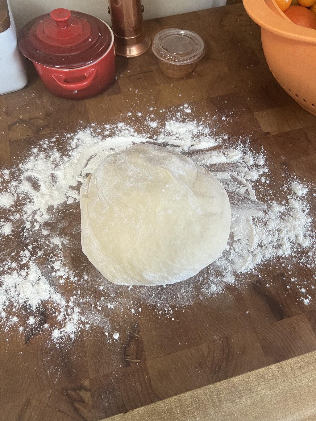 Step #6 Turn dough out onto a well floured surface and begin to work by hand, kneading for about two minutes. You should be able to press your finger into the dough and it bounce back.