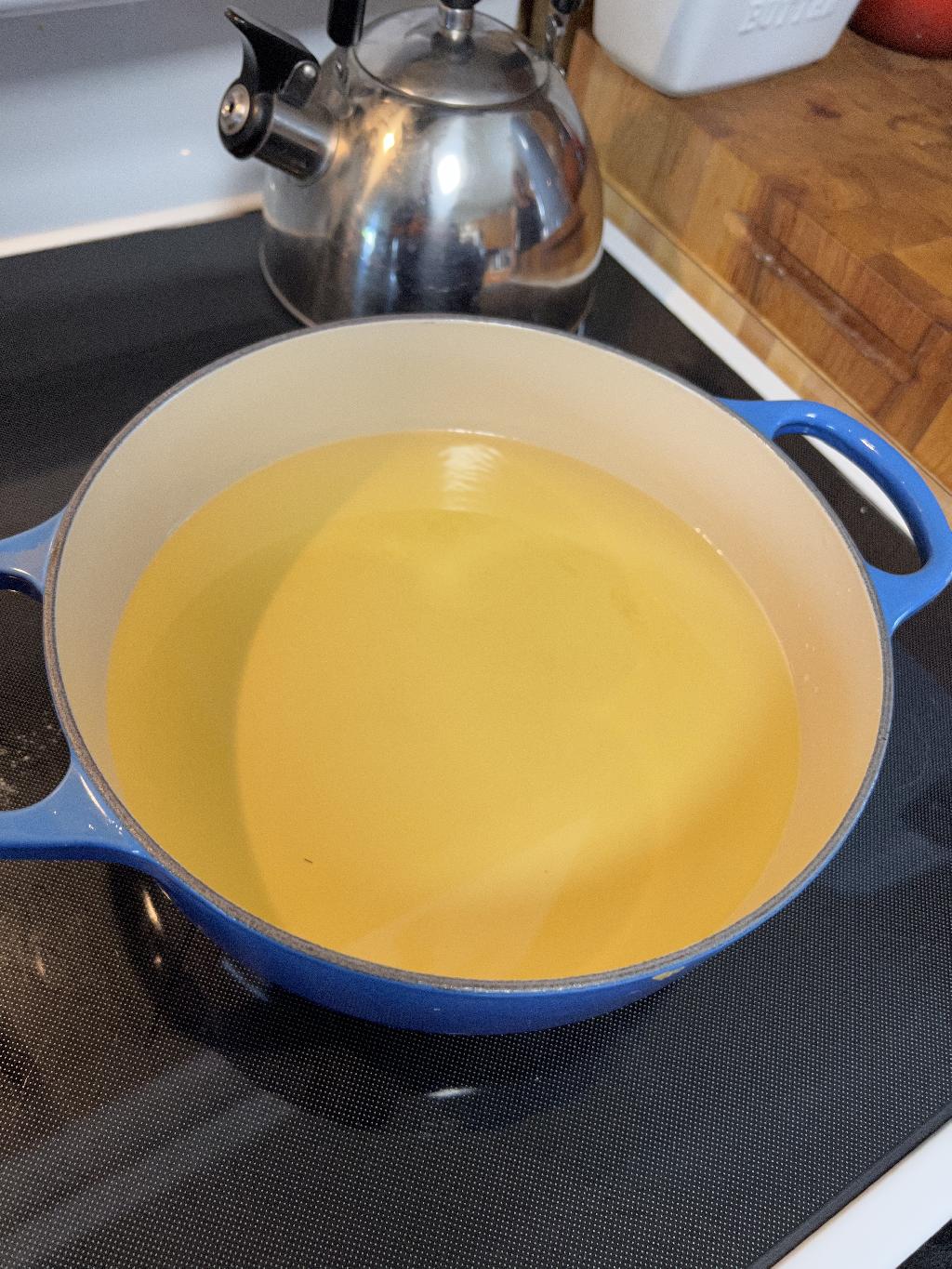 Step #2 Fill dutch oven with enough oil to cover the pheasant breast. Turn heat to high and allow to warm to 350 degrees. Preheat oven to 300 degrees.
