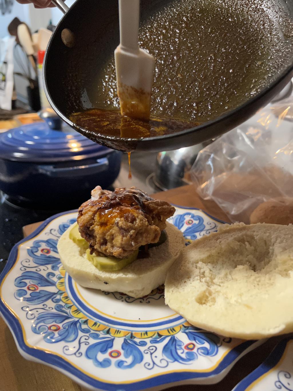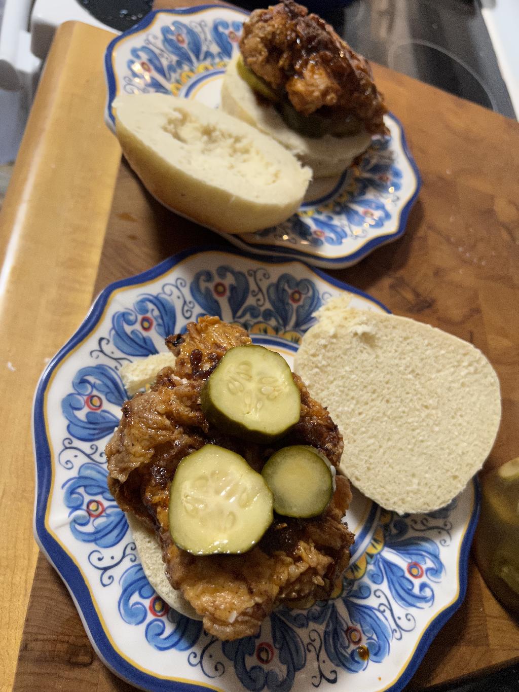 Go back to all recipesI planted a bunch of cucumbers in my garden this year. I planted them, and they died, so I planted them again. Those also died, I believe it was my sixth attempt before I got any plants that survived long enough to be put into the ground. I'm not sure why they kept dying, but I started them early, moving them from inside the house to outside on warm sunny days, to back indoors to avoid the cool nights. Maybe it was the shock of going from inside to outside, over and over that killed them, or perhaps I just overwatered them. All this to say, I ended up with a truckload of really nice cucumbers. I had so many that I had to give a bunch of them away, but what I kept, I made into spicy pickles. Those spicy pickles are really the reason I decided to do this recipe, plus the fact that I had some left-over Brioche Buns from the previous recipe. I've always heard that Chick-Fil-A marinades their chicken in pickles juice, and they also serve pickles on their sandwich, so this fillet sandwiched seemed like a good recipe to try, as it let me use my spicy pickles two ways. Sometimes at work, they cater to Chick-Fil-A and it always seems like a treat. I personally like the spicy sandwich and wanted to create my own home version. This isn't meant to be a copy of their recipe, it was only used for inspiration. This is my Spicy Pheasant Fillet Sandwich with a Paprika Butter Sauce.