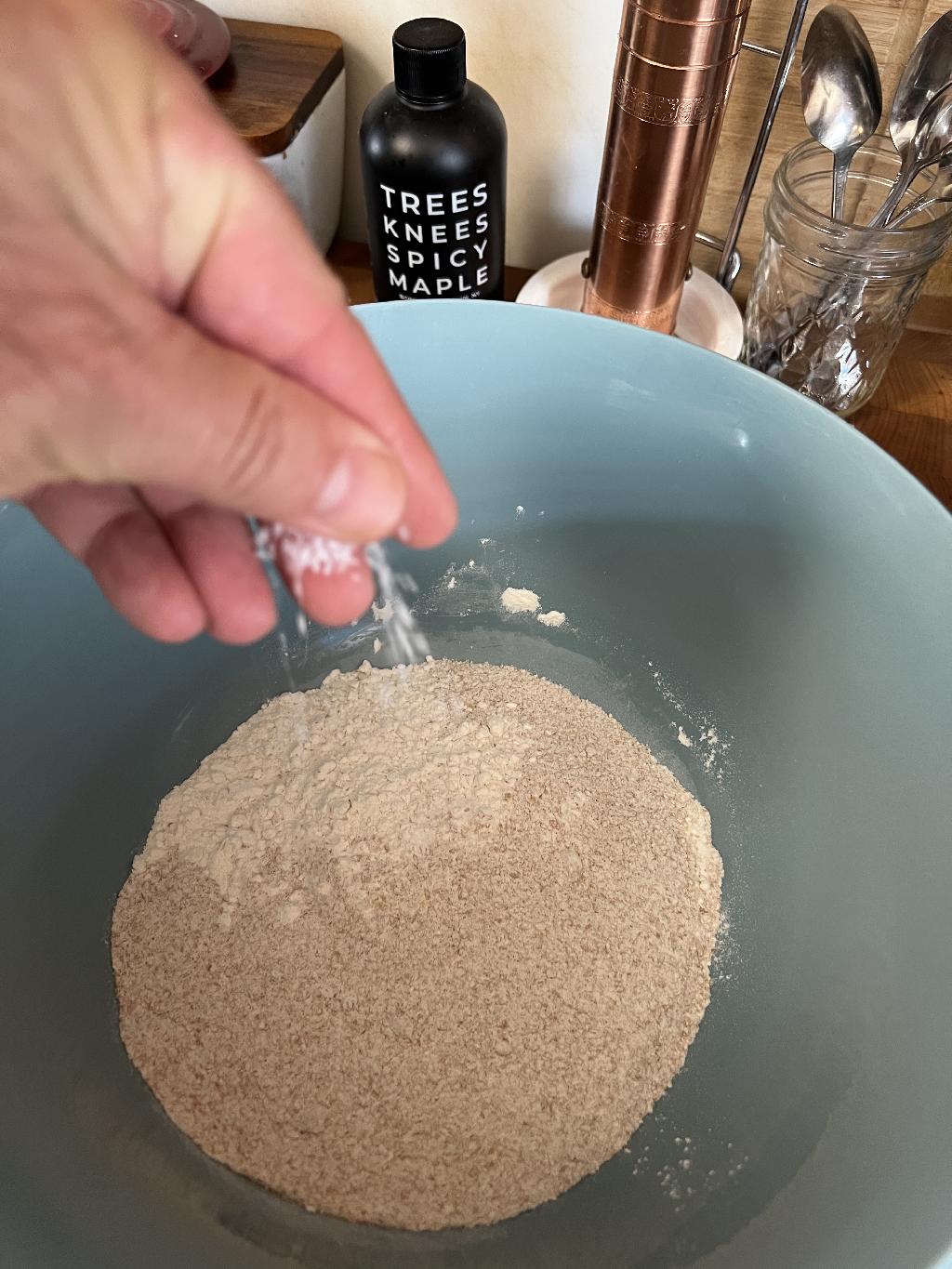 Step #1 Combine Wheat Flour, All Purpose flour with a pinch of salt in mixing bowl.