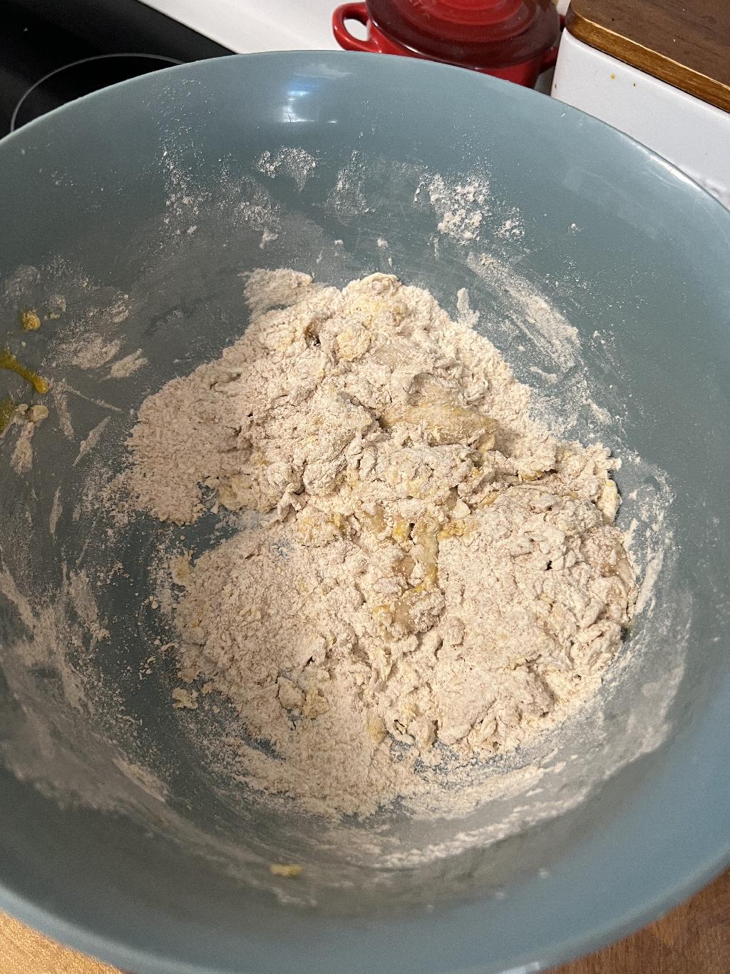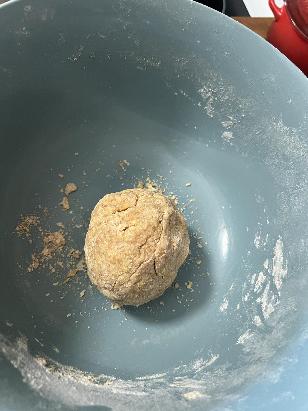 Step #4 When the dough comes together, turn out on a when floured surface and knead by hand. Or if you have a stand mixer, use dough hook on medium setting.