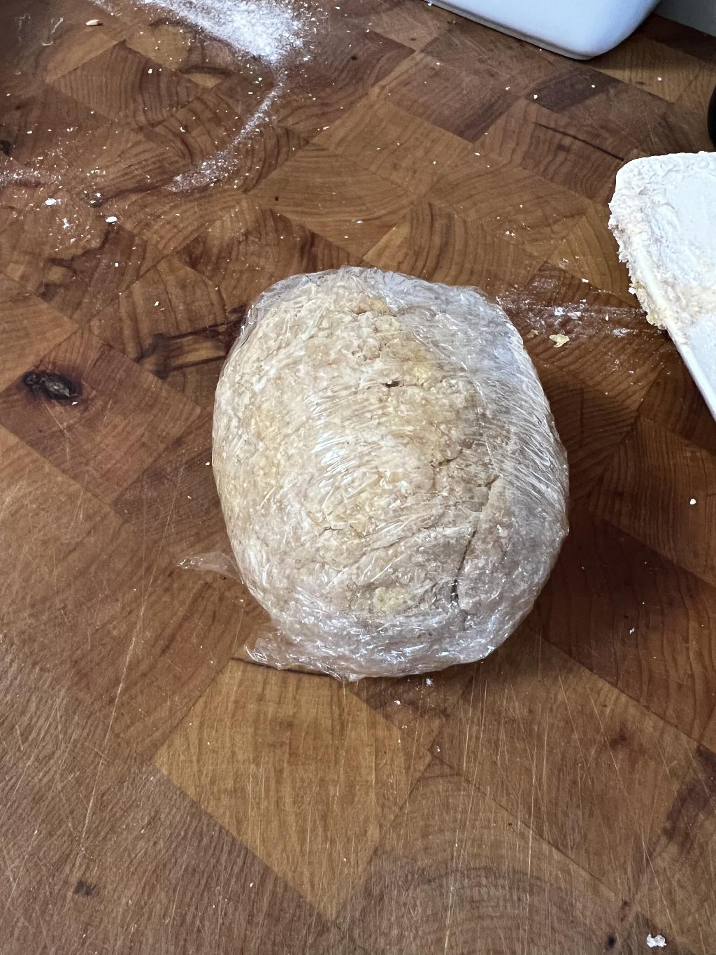Step #5 Wrap the dough in plastic wrap and set aside until sauce is ready.