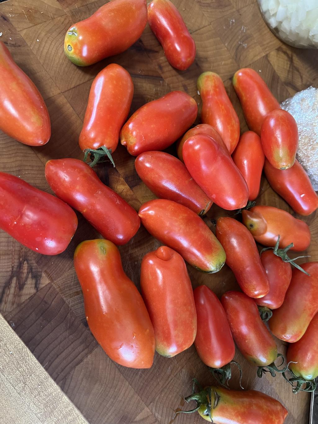 Go back to all recipesI planted a bunch of Brandywine tomatoes this year, along with an equal number of San Marzano tomatoes. My Brandywine tomatoes didn't do so hot, maybe it was the extreme heat we had all summer or the lack of rain. They looked healthily starting out and I was hopeful they'd produce a good crop, but when we finally did get rain, they basically exploded on the vine. Their skin started to form cracks all over, the whole lot of them just looked gross and unsightly. My San Marzano tomatoes on the other hand actually did great, a side from being a little undersized and a few developing blossom rot.