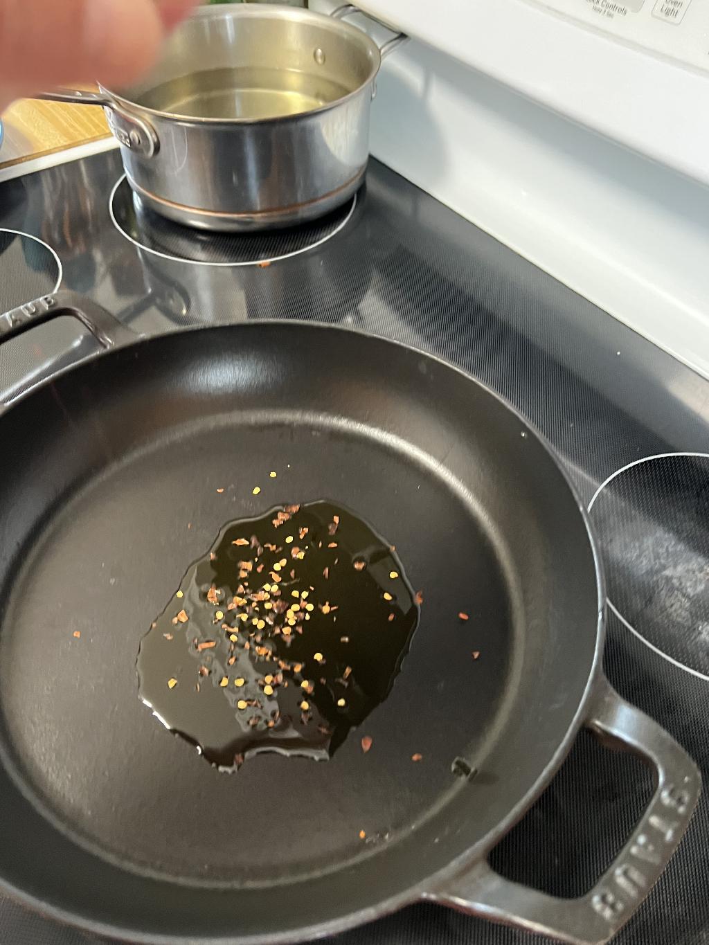 Step #10 Throw in about a half tablespoon of red pepper flakes.