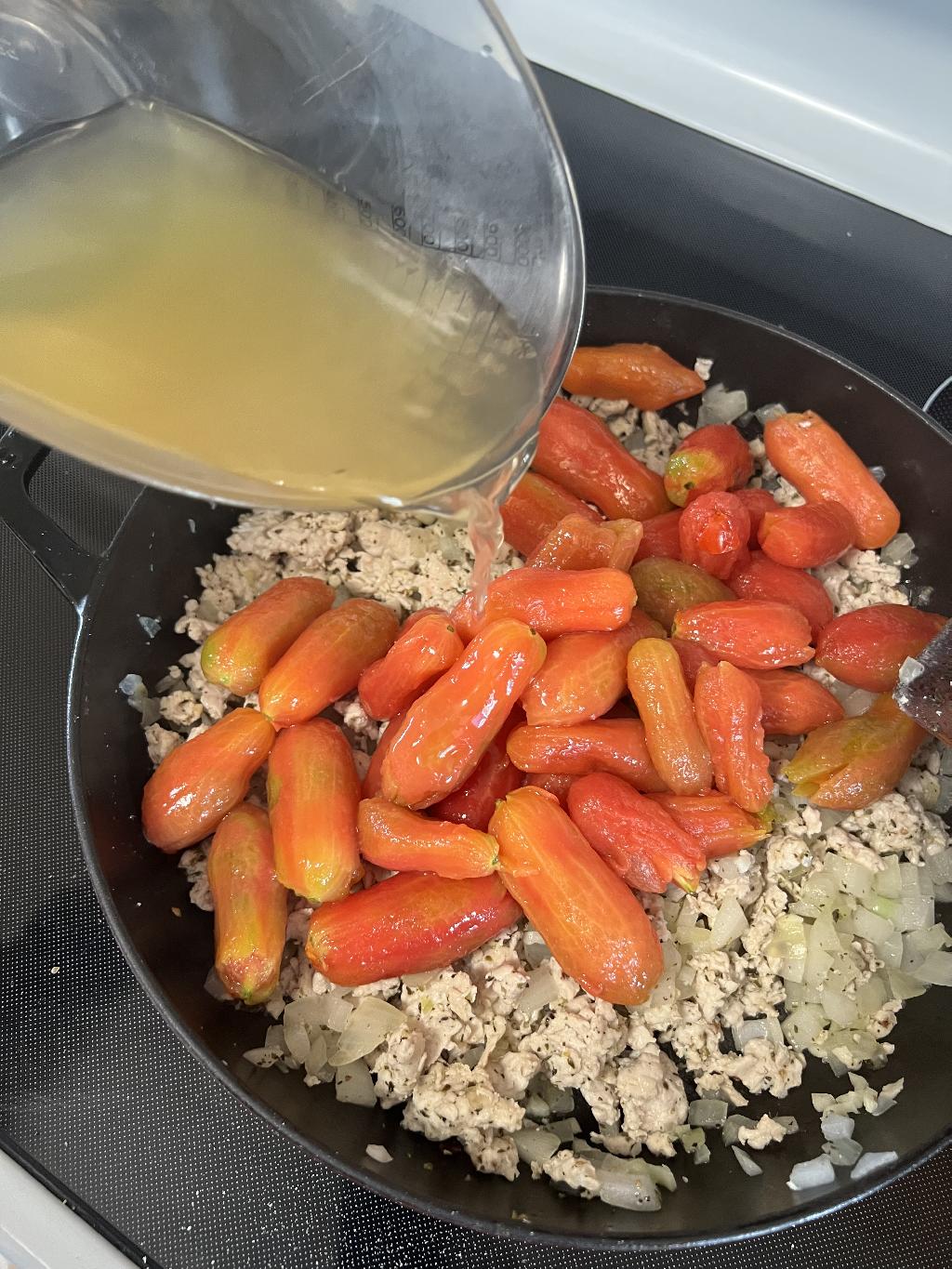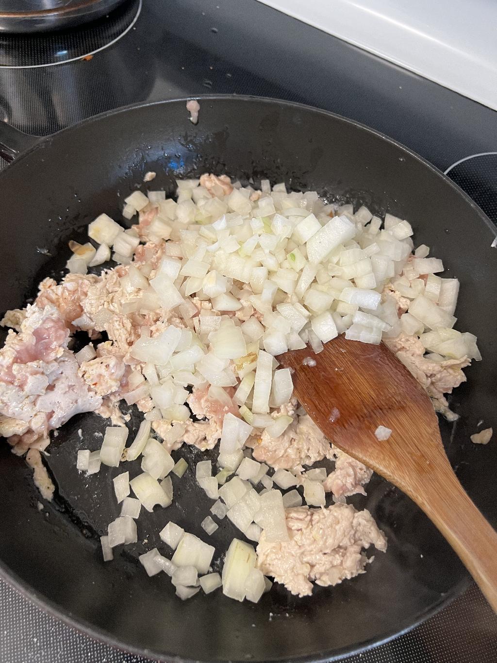 Step #12 Allow pheasant to cook for a few minutes before adding diced onion.