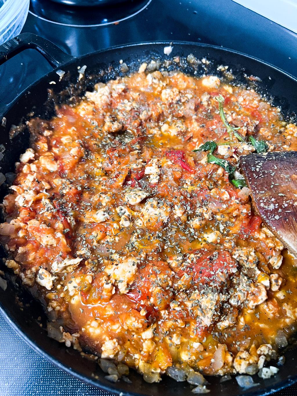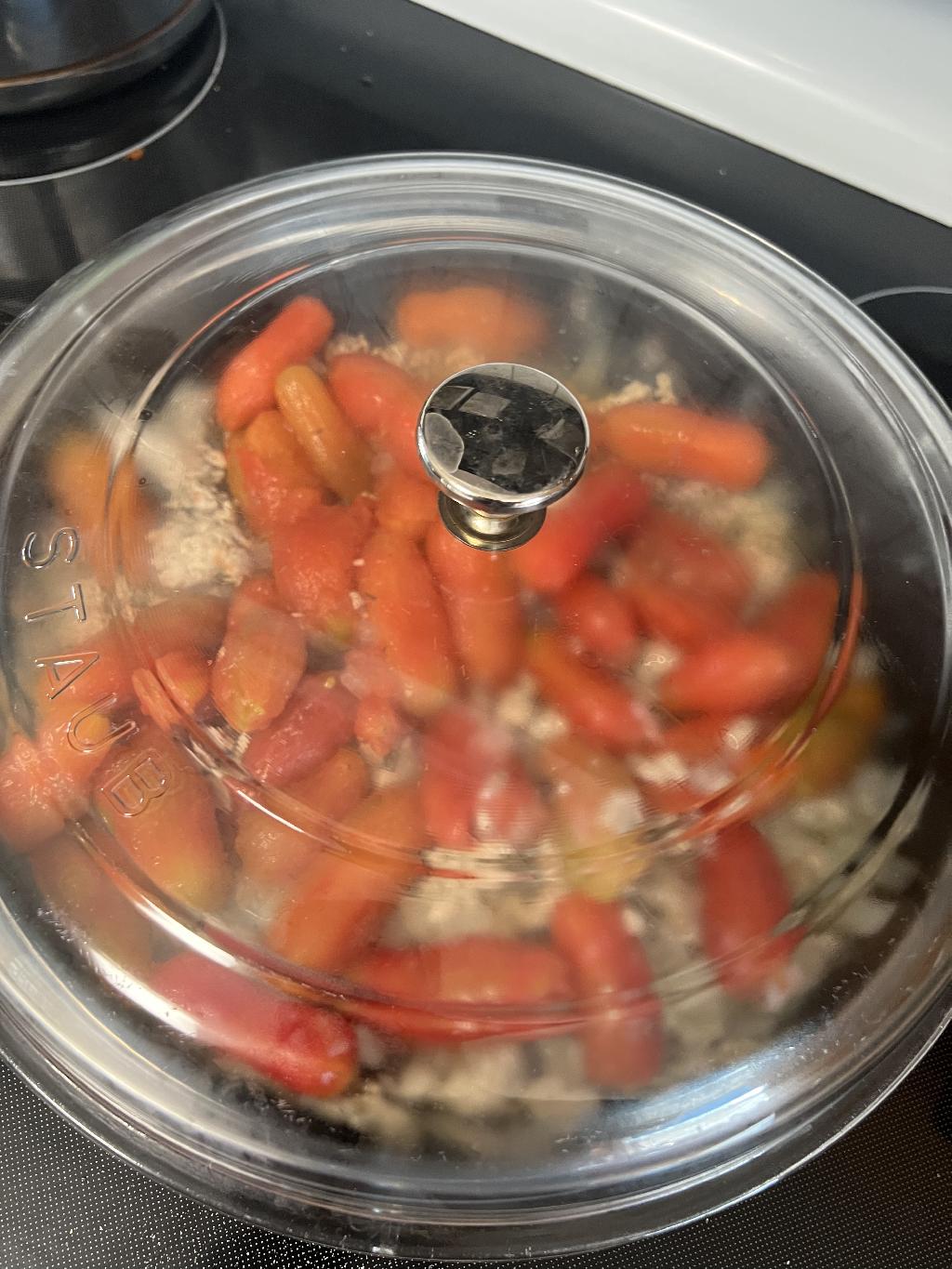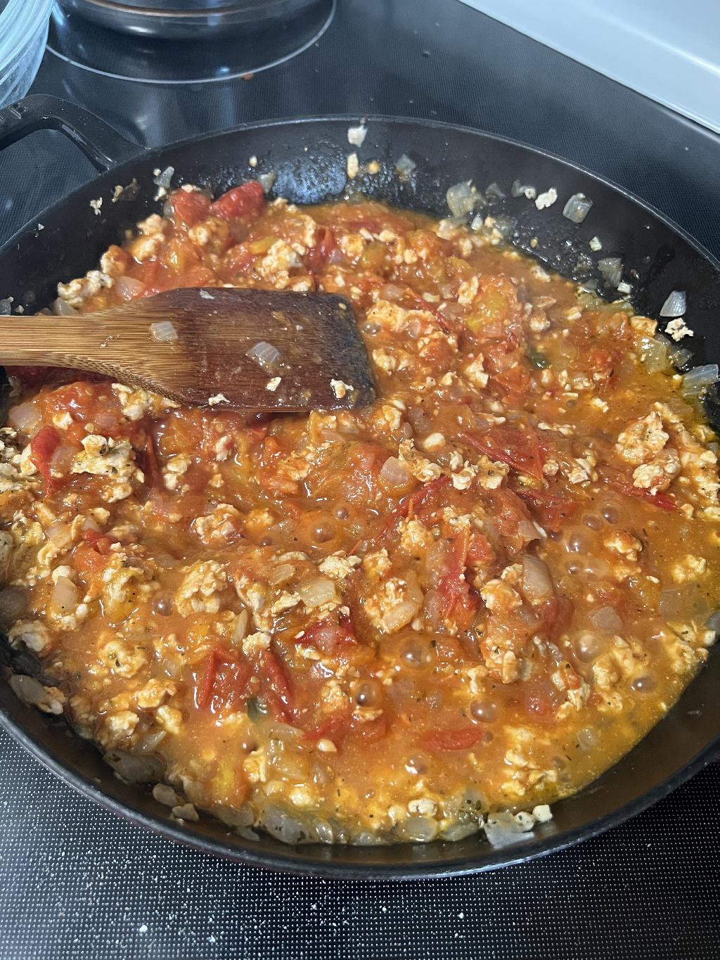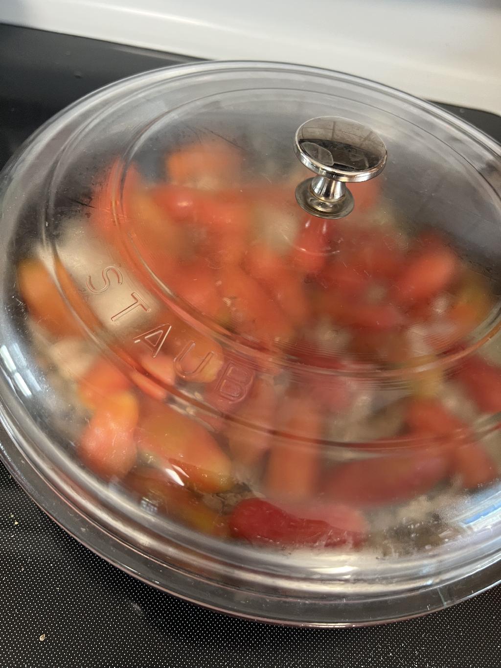 Step #19 Using a spatula break part the tomatoes, they should easily fall apart.