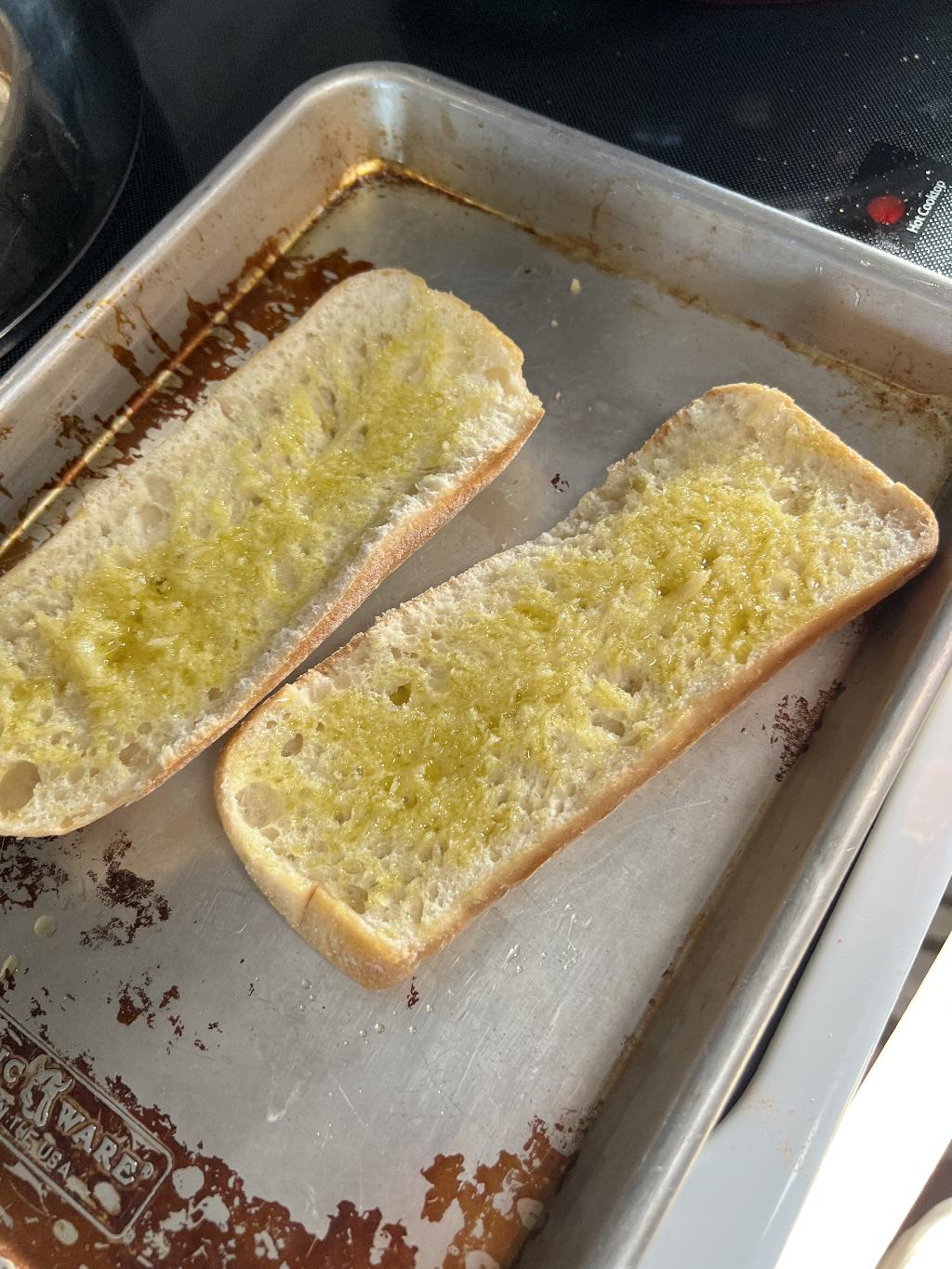 Step #30 Brush your bread slices with Garlic Infused Olive Oil