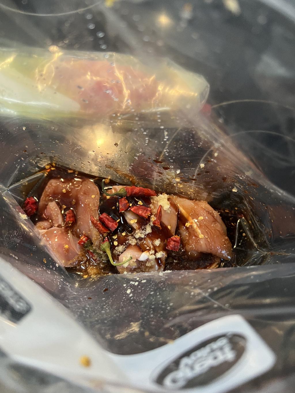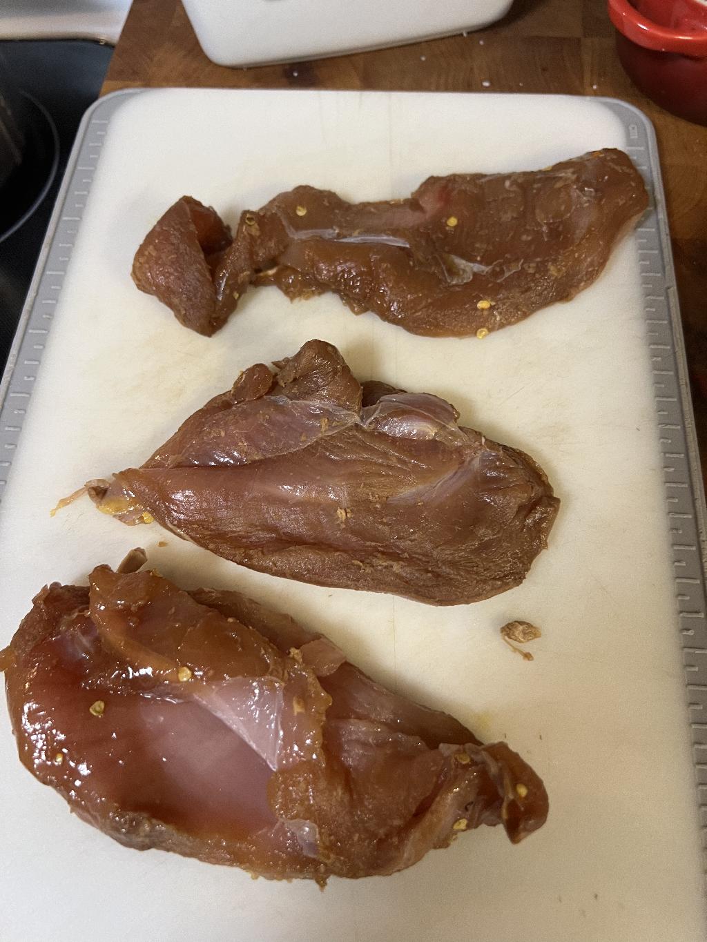 Step #1 Remove any skin from the Pheasant Breast. Place meat in zip lock bag. Add Soy Sauce, Vodka, Hoisin, Vinegar, Ginger, Garlic and Peppers. Seal the bag, then shake it about combining all the ingredients, while coating the pheasant. Place in the refrigerator for a couple of hours.