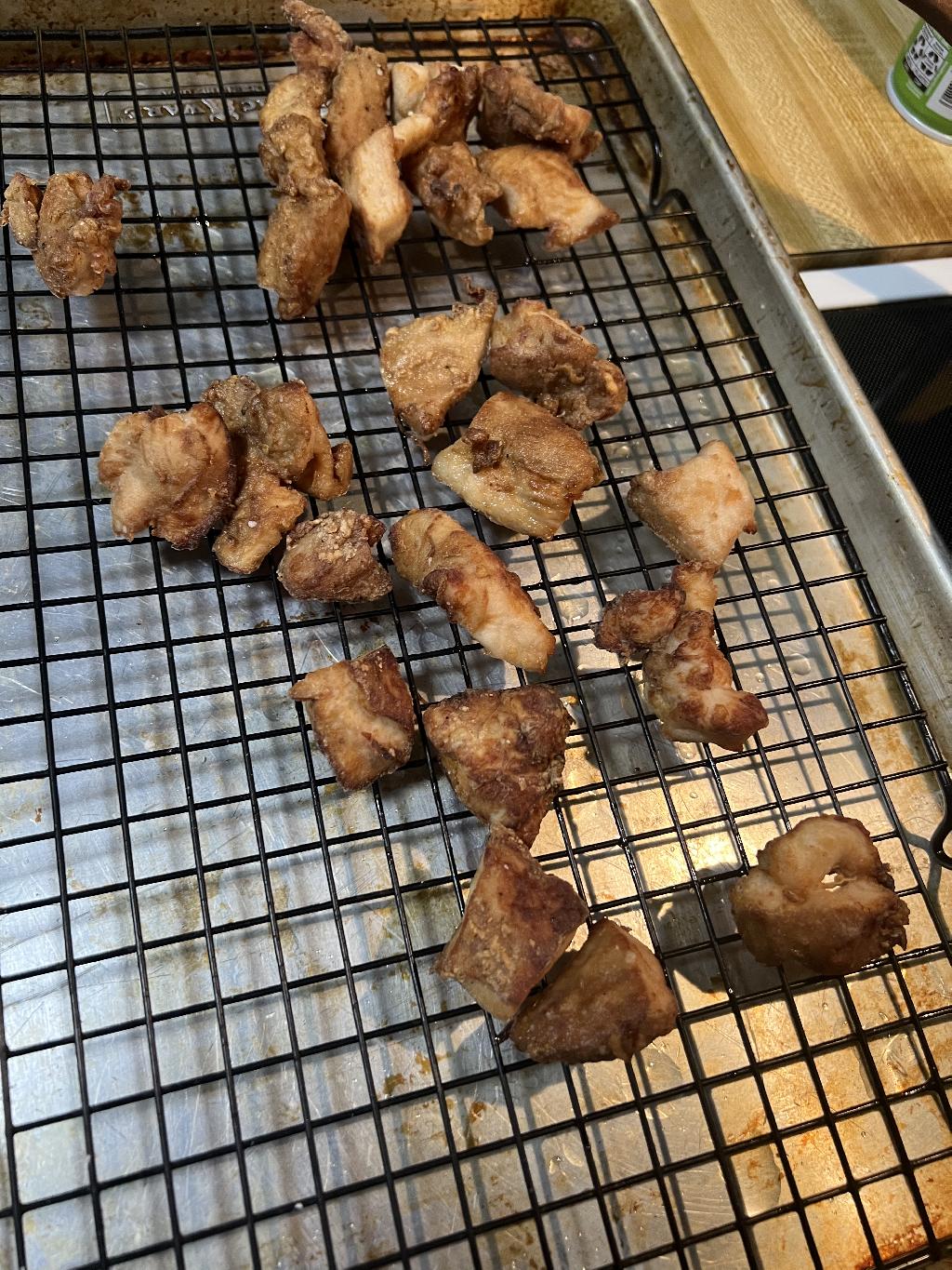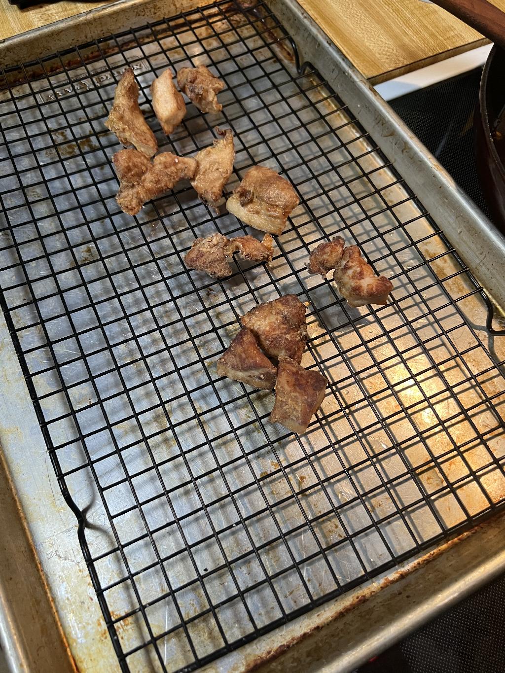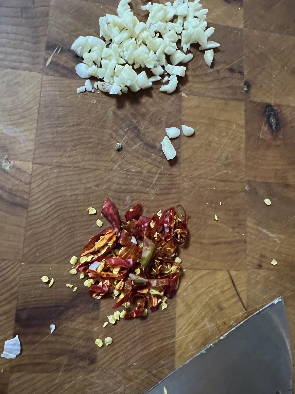 I have a surplus of hot chili peppers from the garden this year. Lots of Jalapeño, Haberano, Serrano and Cayenne. You can only make so many jars pickled peppers before you need to start finding other uses for them. Since I like my General Tso extra spicy, I decide to use some of my Cayenne peppers I grew to make my Genearal Tso sauce ... and they did not disappoint! I dried a bunch of my peppers in the oven, not sure of what I wanted to do with them, just wanted to preserve them. I sliced up some of my dried Cayenne peppers and added them to some sesame oil with some sliced garlic and just let it hang around for a few hours. I then used that as a base for my sauce, adding in Pheasant Stock, Soy Sauce, Hoisin, Rice Vinegar, Brown Sugar, Grated Ginger and more Garlic.