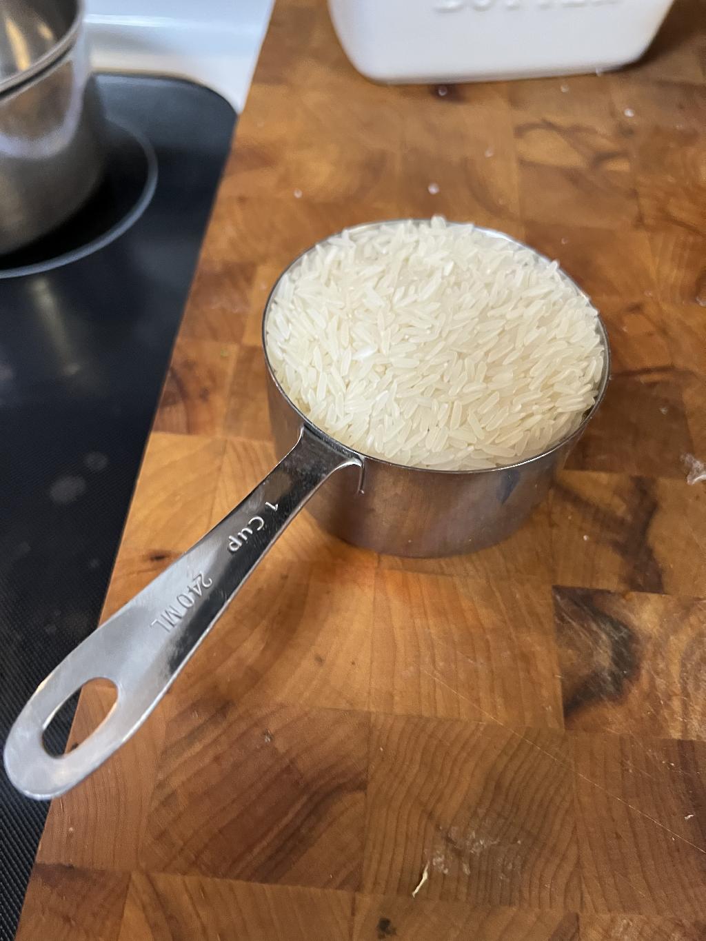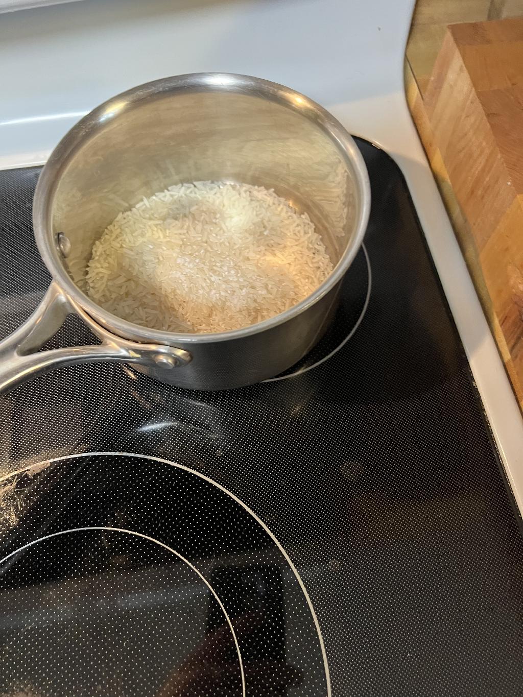 Step #3 Sprinkle in salt. Allow to reach a boil, then reduce heat and cover. Cook for 20 minutes, then turn off heat. Allow to sit for 20 minutes before removing lid and fluff rice with fork.