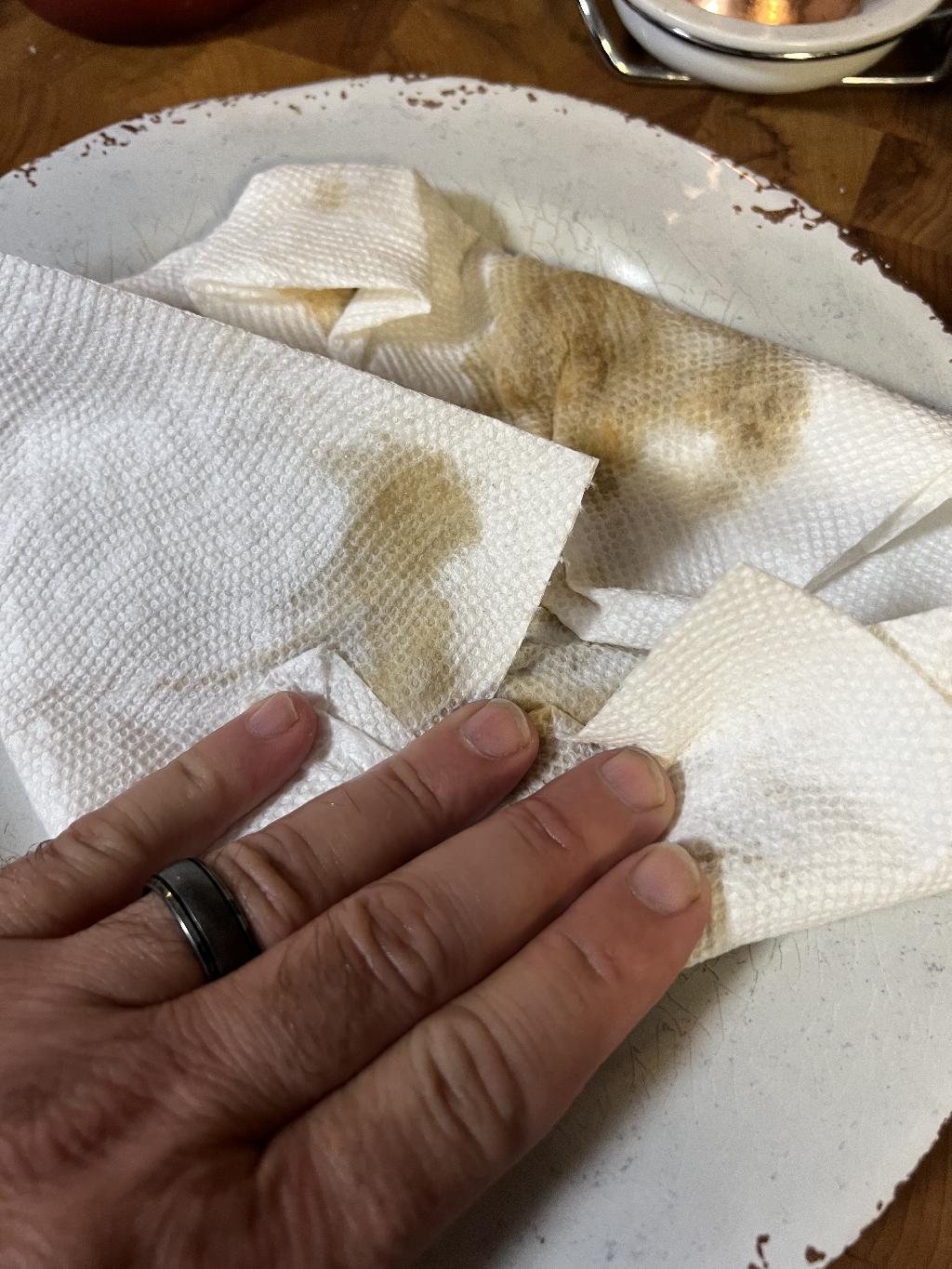 Step #4 Make sure the pheasant piece are dry. Use paper towels to absorb any excess marinade.