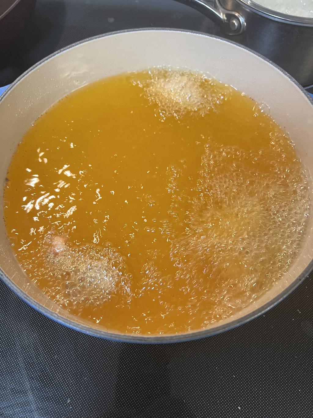 Step #1 Fill a large dutch oven with enough oil to cook the pheasant. Allow temperature to reach 350.