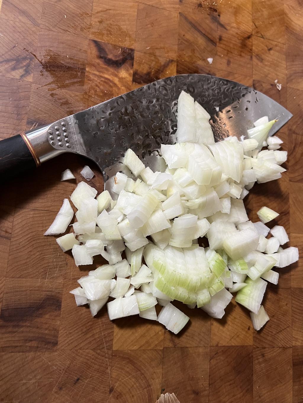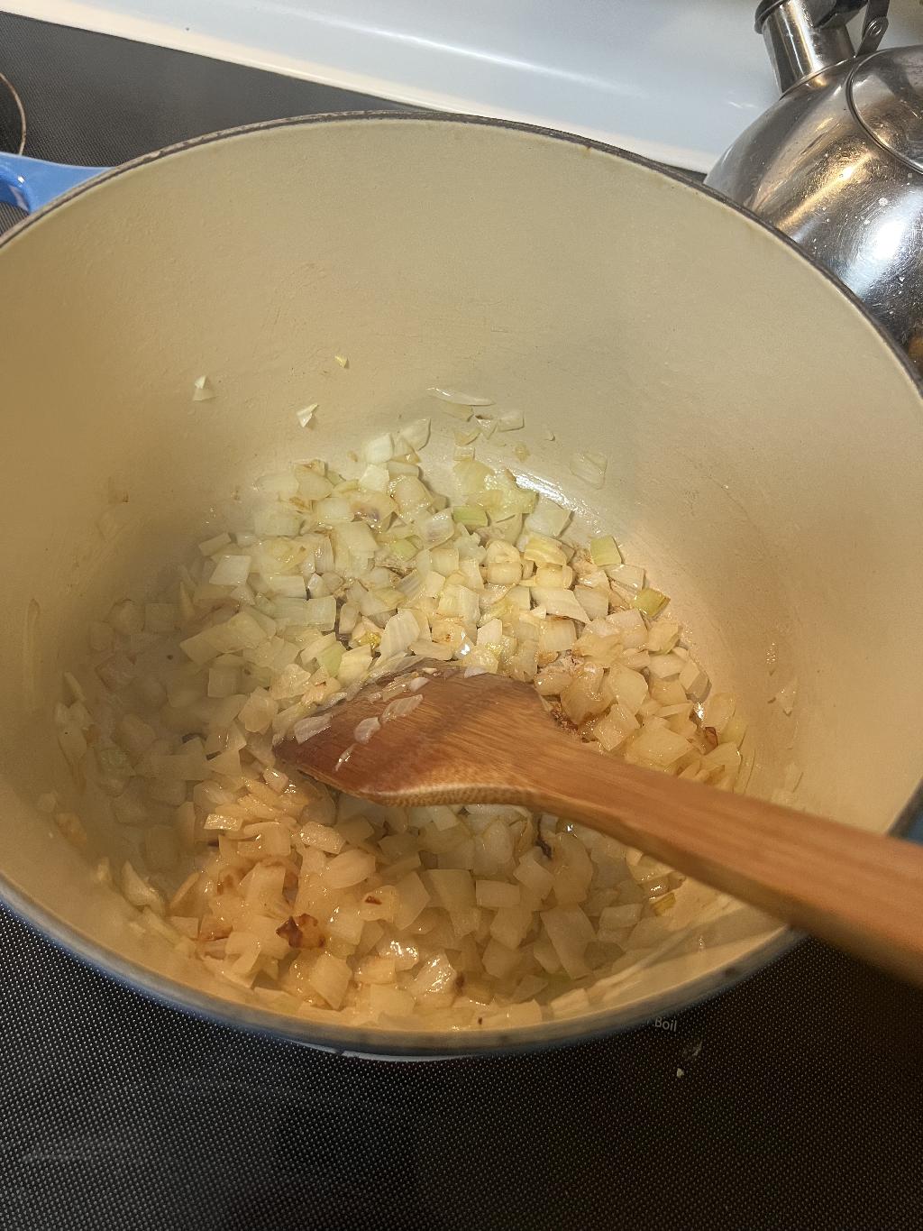 Step #6 Cook for 5 minutes or until they start to become translucent.