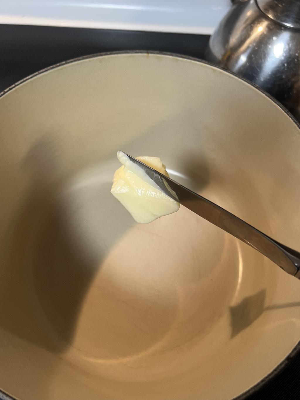 Step #4 In large Dutch oven add 2 tbsp of butter, setting heat on medium high