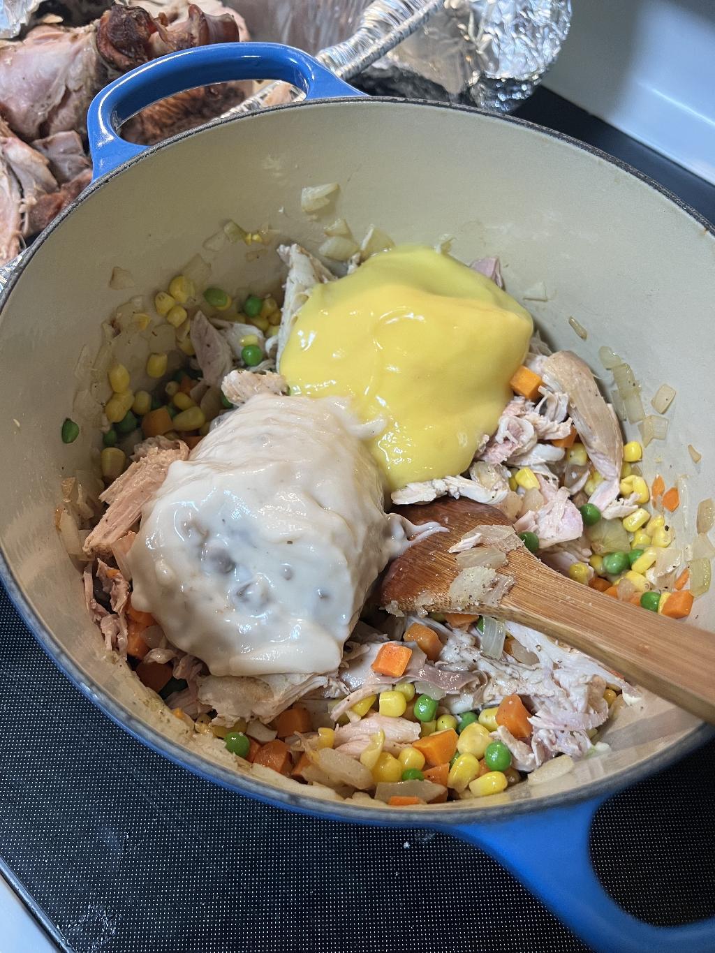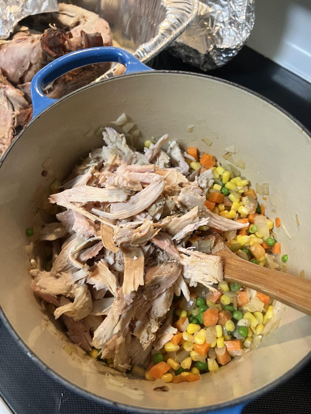 Go back to all recipesLeft-over Turkey is one of my favorite meals and I can’t get enough it during the holiday season. I’ll cook extra turkey’s each year, just to make sure I have plenty of leftover meat. This year is no different, the weekend after Thanksgiving, I smoked two more birds in my backyard smoker. So far, I’ve made Smoked Turkey Gumbo, Turkey Enchiladas Casserole, Turkey Quesadillas and Turkey BQQ Sandwich, plus this Turkey Pot Pie. I might try to post all these recipes, but I didn’t take a lot of pictures. These were all pretty quick meals to prepare and don’t take a ton of ingredients.